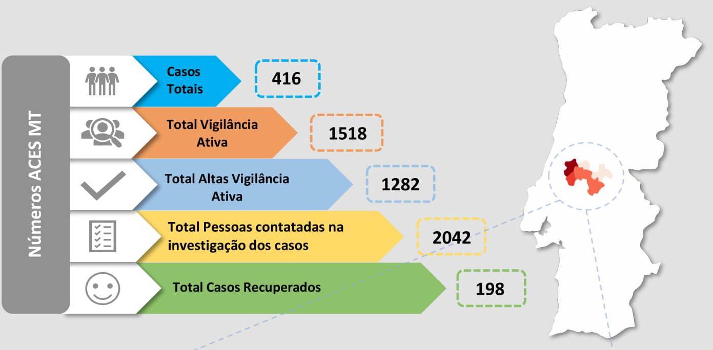 As vigilâncias ativas são 238 nos concelhos de Abrantes (62), Alcanena (8), Entroncamento (30) Ferreira do Zêzere (30), Mação (1), Ourém (28), Tomar (37), Torres Novas (23) e Barquinha (19).