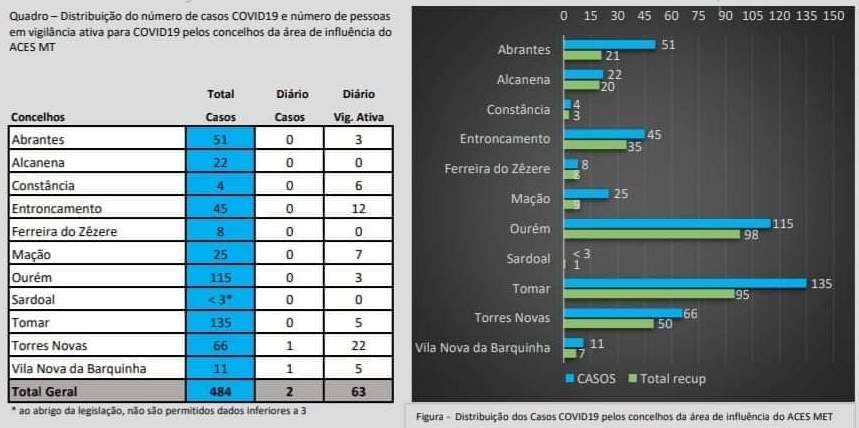 Os dois infetados foram registados em Torres Novas, soma um total de 66 casos, e em Vila Nova da Barquinha, que atinge os 11 infetados.