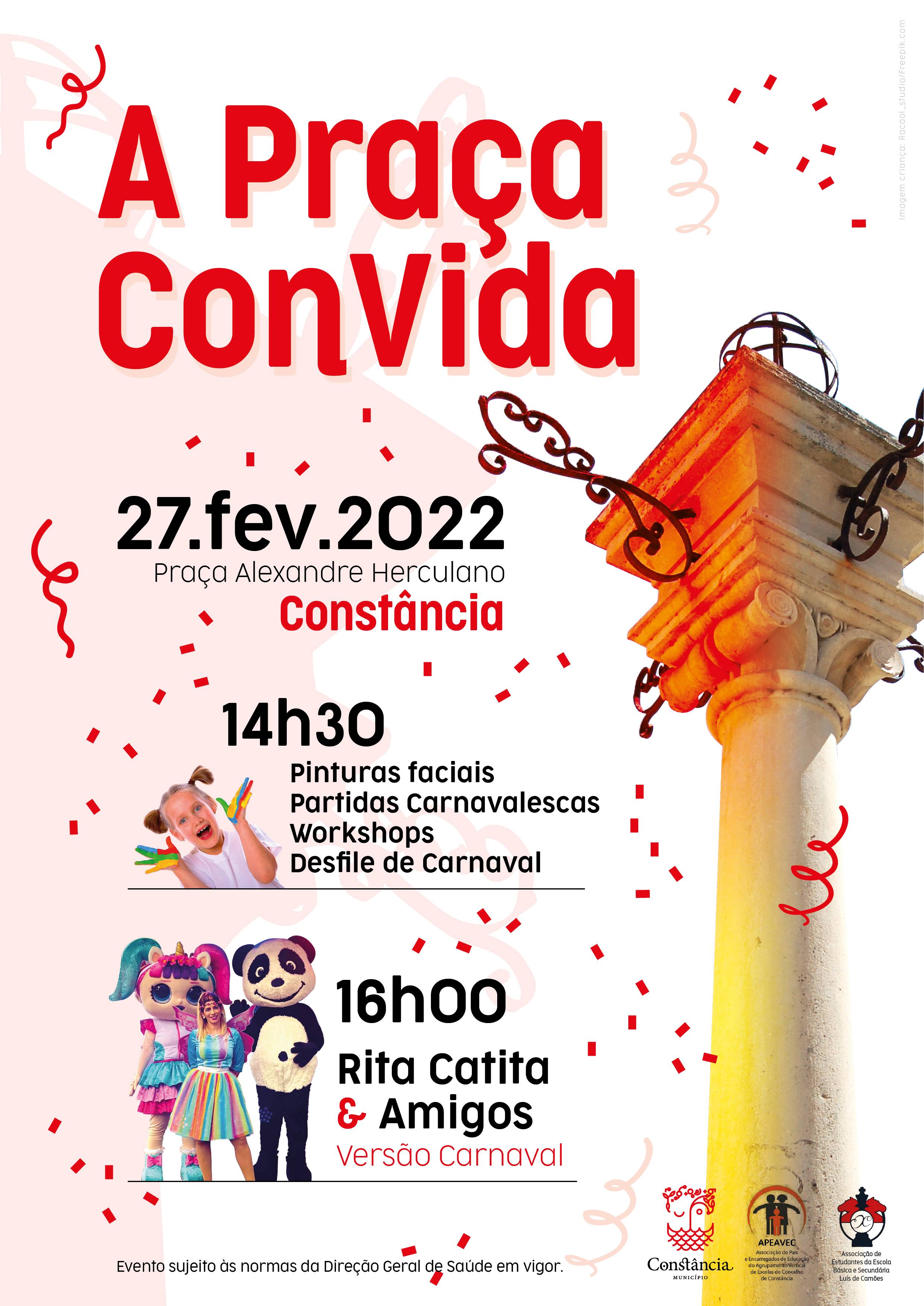 A Câmara Municipal de Constância vai dinamizar a edição de fevereiro de A Praça ConVida, um evento que decorrerá no próximo 27 de fevereiro, a partir das 14h30, na Praça Alexandre Herculano, em Constância, desta vez dedicada ao Carnaval.