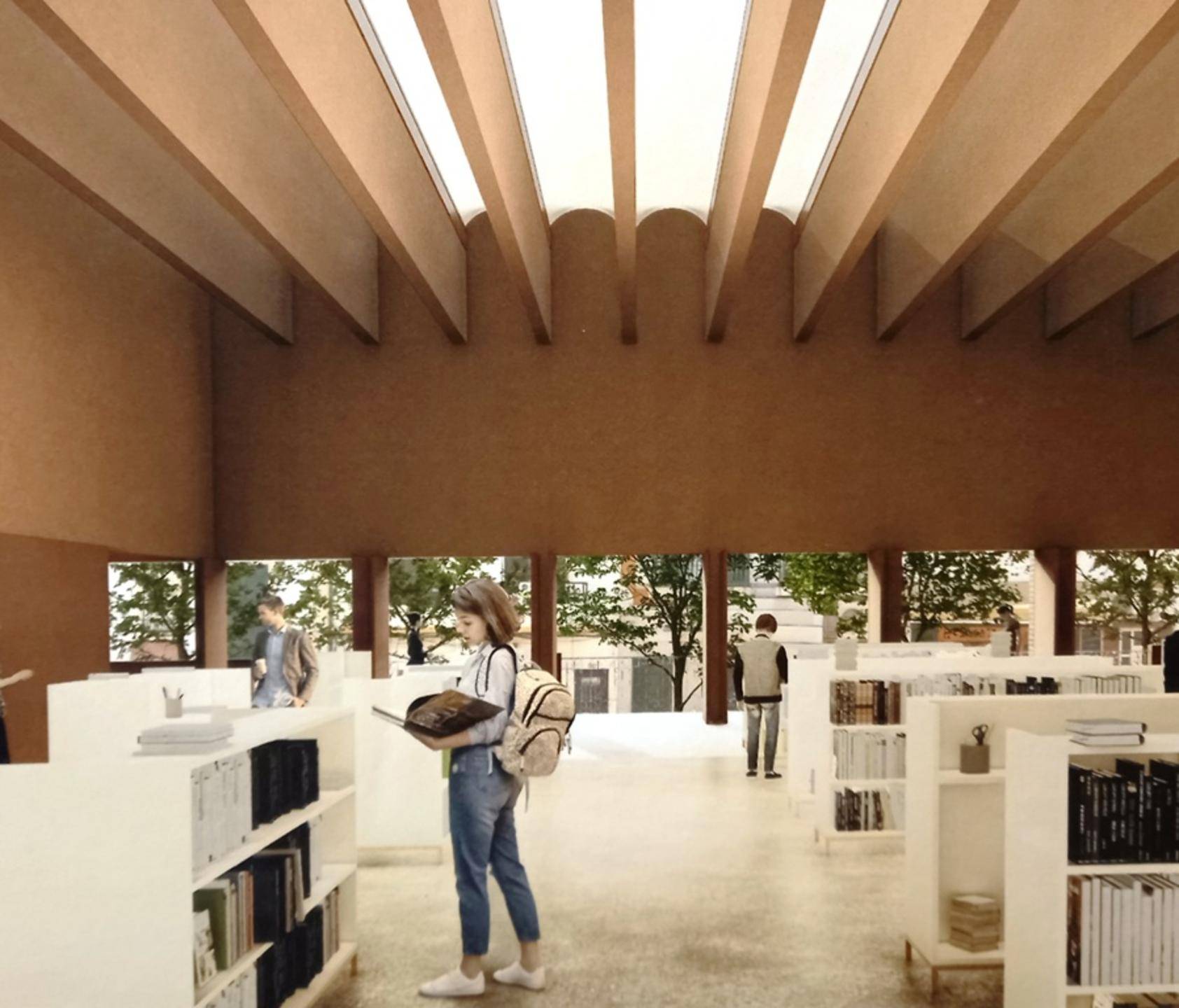 Uma praça exterior, confinante com a subida/descida da Avenida 25 de Abril, zonas pedonais acessíveis em redor do edifício, linguagem arquitetónica consentânea com o parque do Vale da Fontinha, facilitando a mobilidade no acesso ao edifício (elevadores) e a entrada no Centro Histórico da cidade, dotando-a de uma identidade urbana, são outras propostas do projeto vencedor. A cave, será certo, deverá dar corpo a um bloco de garagens.