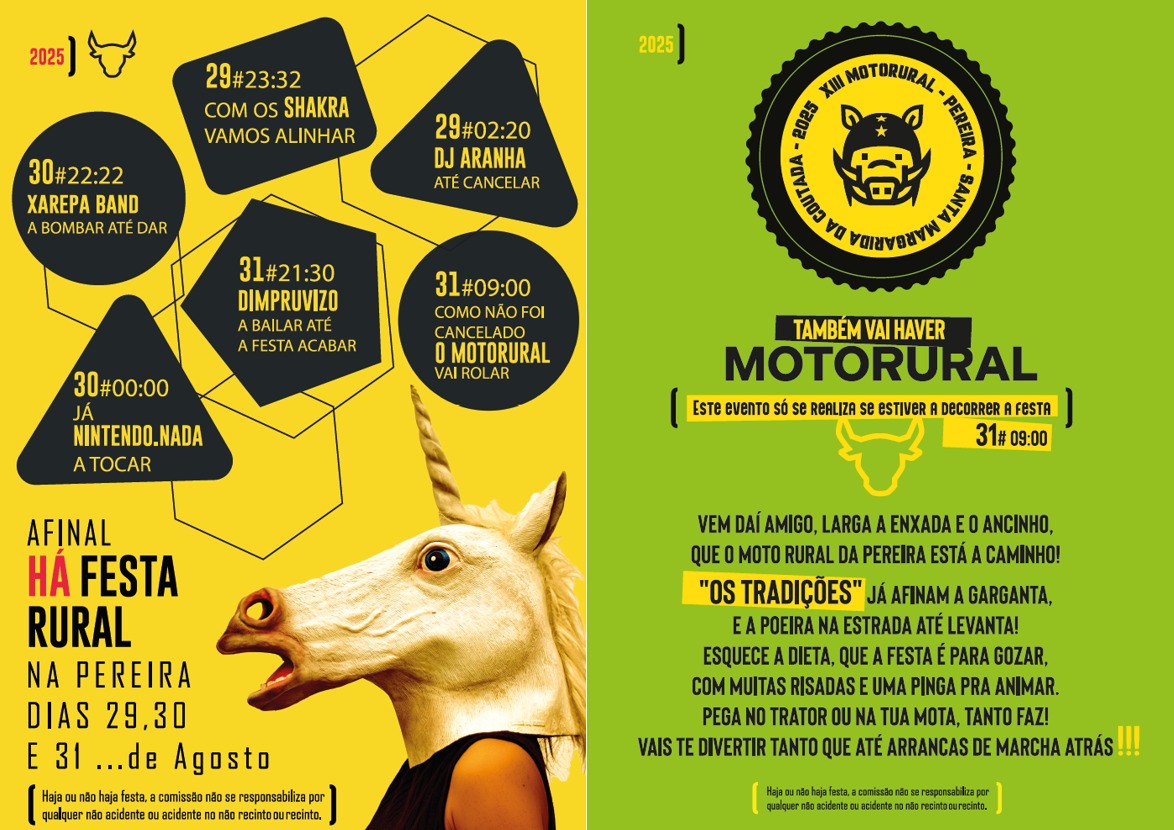 Os Xarepa Band, Chakra, Dimpruvizo e DJ Aranha são alguns dos concertos anunciados para a 13.ª edição de um certame que tem este ano como mote “Afinal há Festa Rural!” e em que a irreverência e a celebração de ruralidade são, segundo a organização, marcas identitárias.