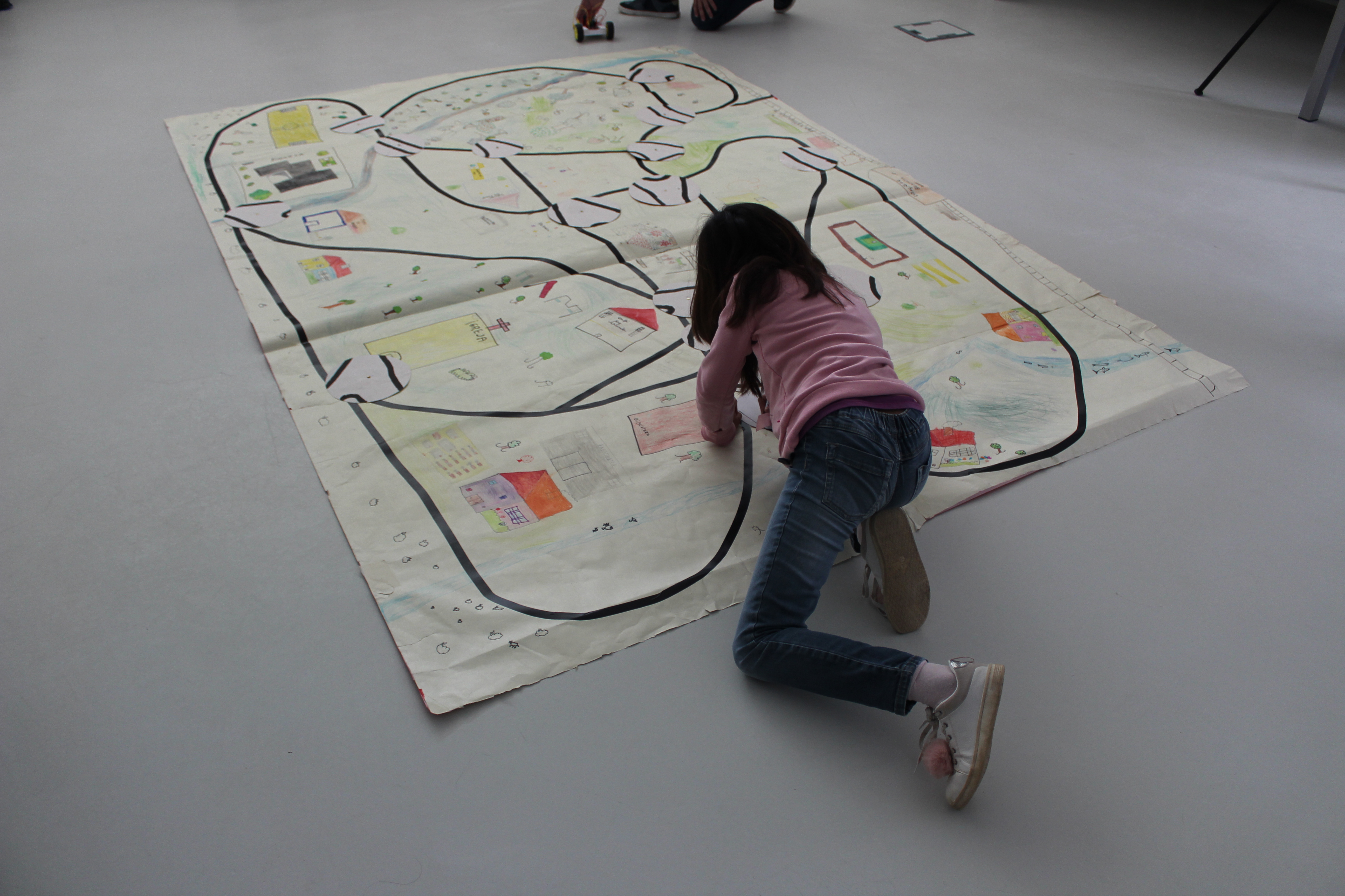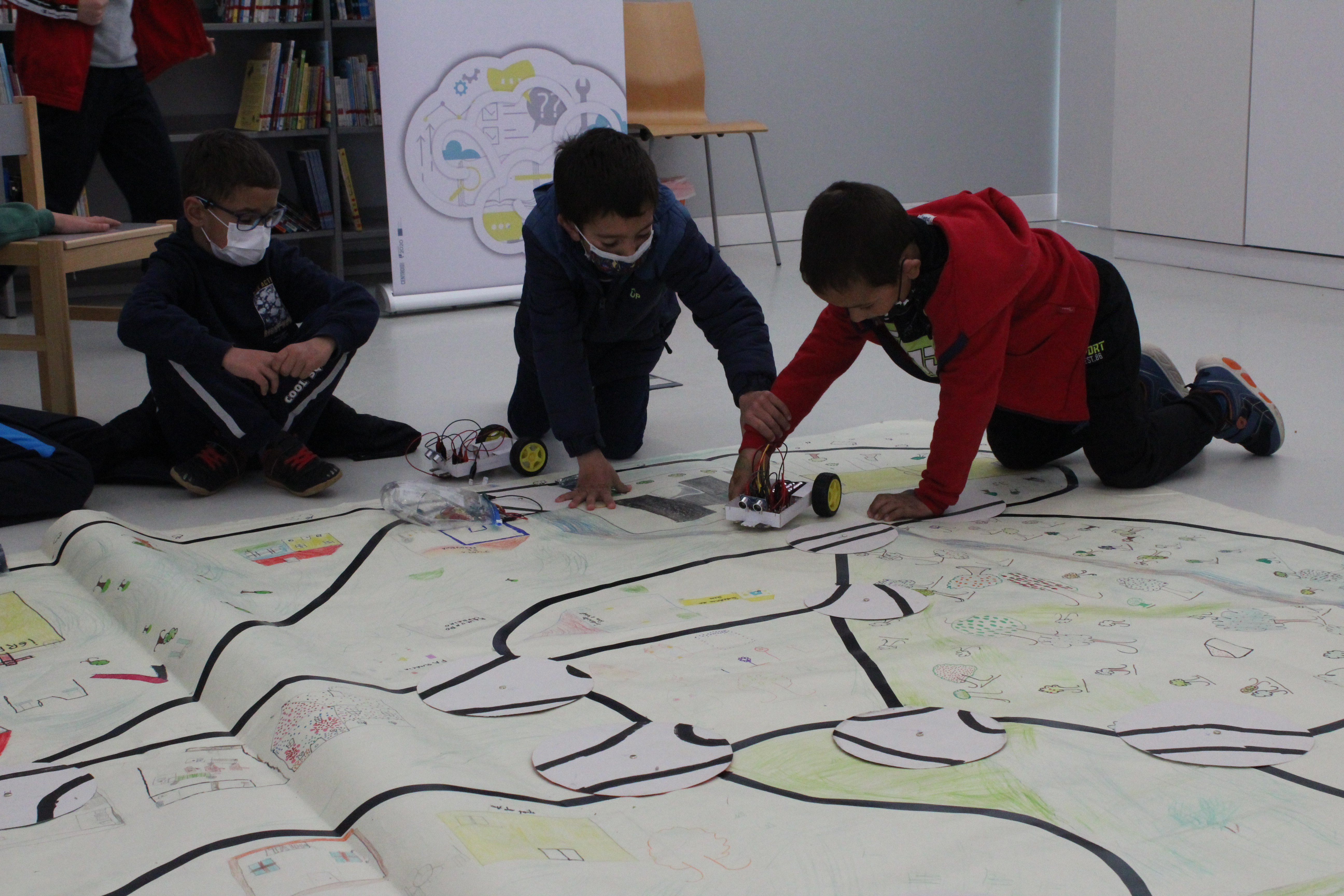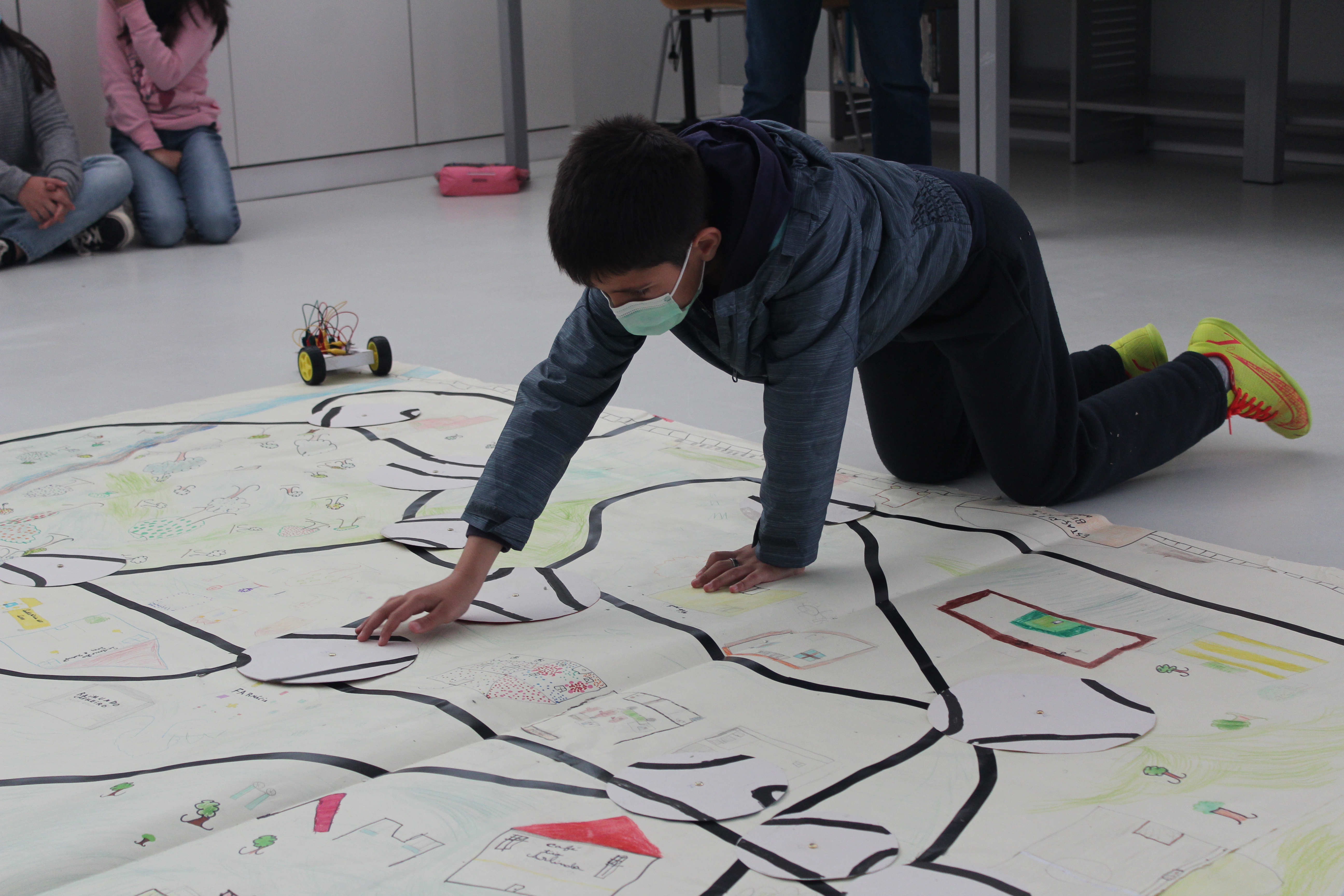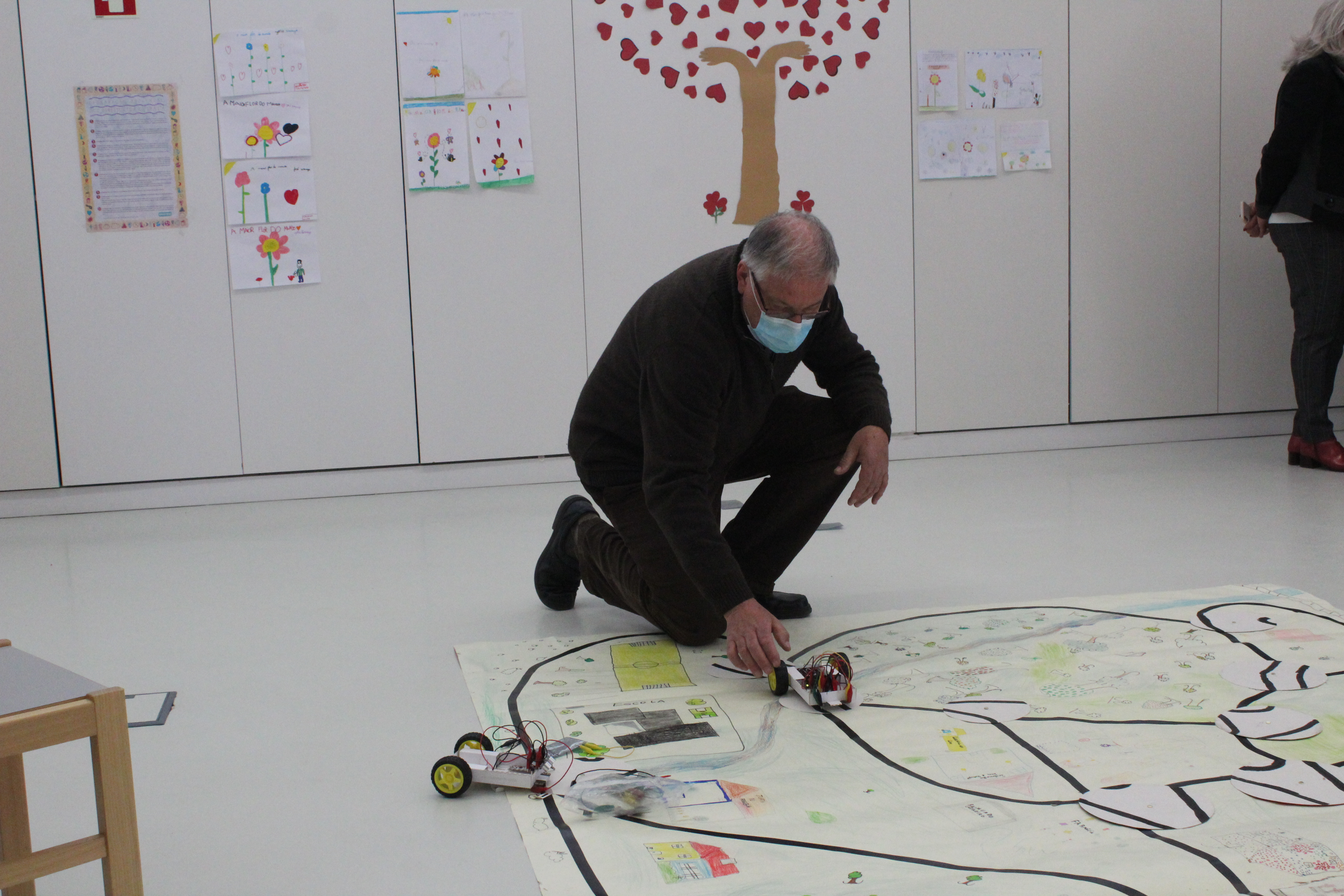 Um mapa de grandes dimensões feito em papel de cenário pelos alunos e professores, que representa a localidade de Bemposta, e que tem um percurso que os carros irão conseguir ler através de discos que giram e que permitem que o carro vá na direção que se quer foi o trabalho apresentado por um conjunto de alunos motivados da Escola de Bemposta no âmbito do T_CODE.