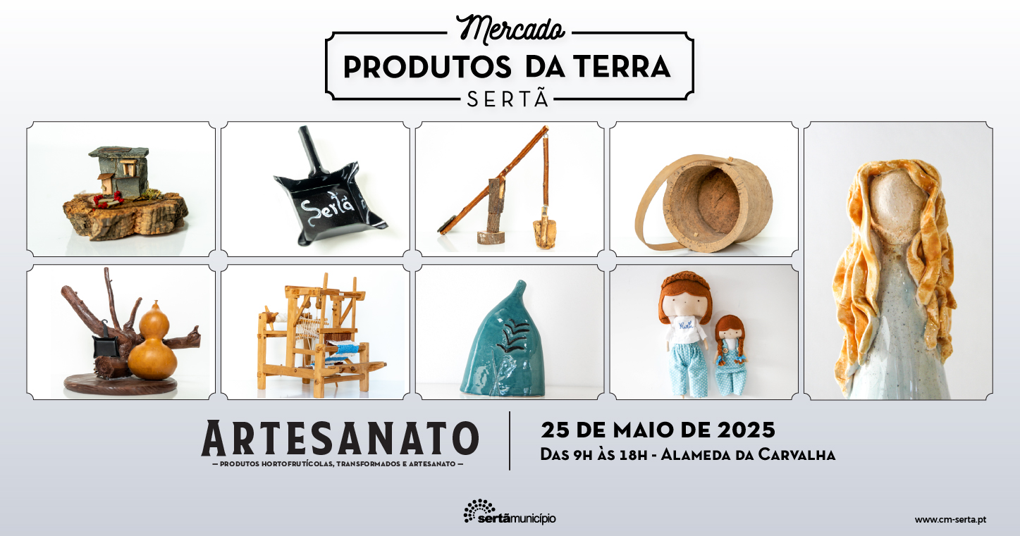 Dia 25 de maio, a Alameda da Carvalha, na Sertã, recebe uma nova edição do mercado “Produtos da Terra”, este mês dedicado ao artesanato. Será possível conhecer e apreciar o trabalho de vários artesãos do concelho, assim como encontrar produtos endógenos, hortofrutícolas diretamente do produtor e muito mais. O mercado “Produtos da Terra” pode ser visitado das 9 às 18 horas.