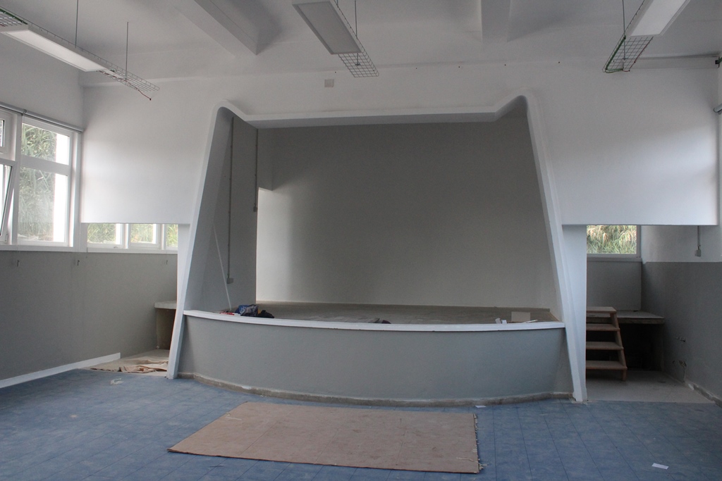 A escola passa a ter balneários novos e uma sala polivalente que mantém o palco para as atividades escolares e da associação de pais.