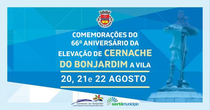 Nos dias 20, 21 e 22 terão lugar as comemorações do 66.º aniversário da elevação de Cernache do Bonjardim a vila. Trata-se de uma organização conjunta do Município da Sertã, União de Freguesias de Cernache do Bonjardim, Nesperal e Palhais e do Clube Bonjardim.
