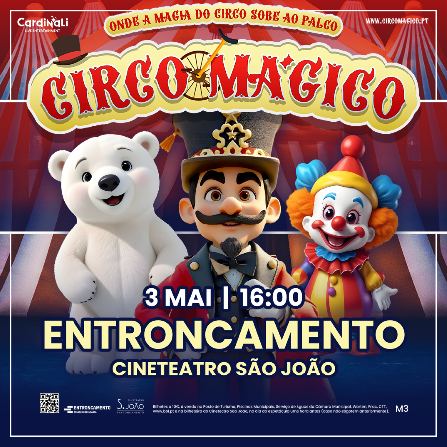 O Circo Mágico sobe ao palco do Cineteatro São João, no dia 3 de maio, sábado, pelas 16h00.