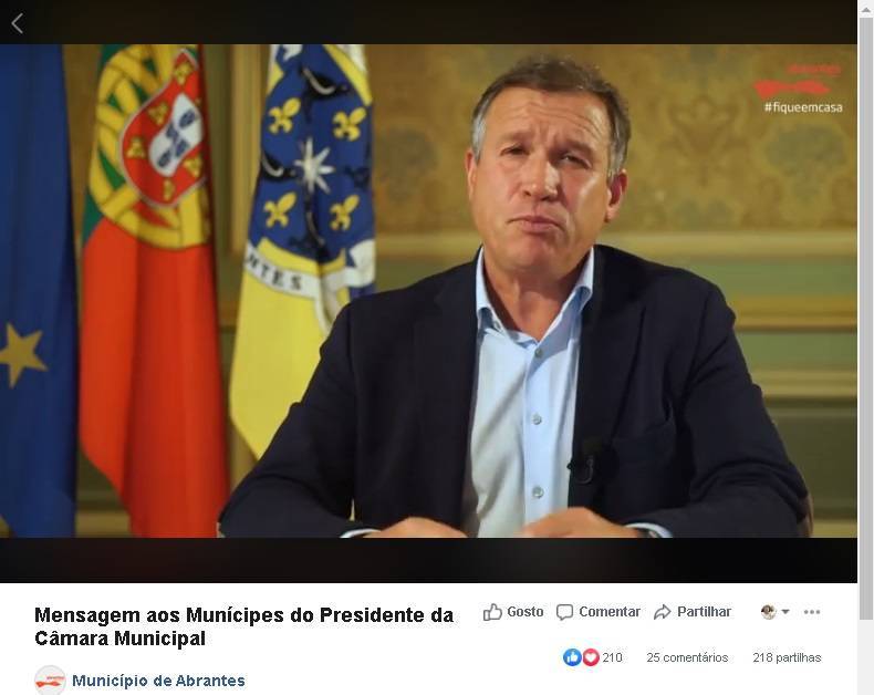 O presidente da Câmara de Abrantes, Manuel Jorge Valamatos, neste vídeo divulgado nas redes sociais diz que “fazemos esta isenção e redução de acordo com as necessidades reais das nossas pessoas, das nossas empresas e instituições, de forma equitativa e solidária. Faz sentido que exista uma redução equiparada a um mês normal de consumo, para permitir que todos os que necessitam de maiores reduções ou mesmo de isenções durante o tempo que for necessário a possam ter sem comprometer o nosso futuro coletivo. É sobre este lema de equidade e solidariedade que temos todos que trabalhar conjuntamente para a sobrevivência do município e do país, sem deixar ninguém para trás.”
