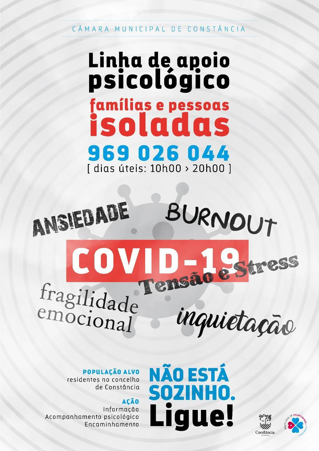 Atenta às consequências que a atual situação de isolamento social pode ter na população, a Câmara Municipal de Constância disponibiliza um serviço apoio psicológico às famílias e pessoas isoladas residentes no Município.