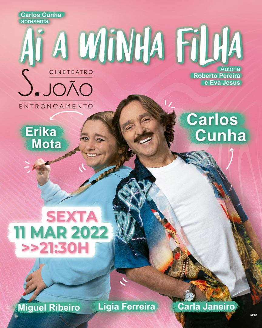 A comédia “Ai a minha filha”, destina-se a maiores de 12 anos e é uma produção de “Carlos Cunha Produções” que conta com os atores Carlos Cunha, Erika Mota, Miguel Ribeiro, Lígia Ferreira e Carla Janeiro.