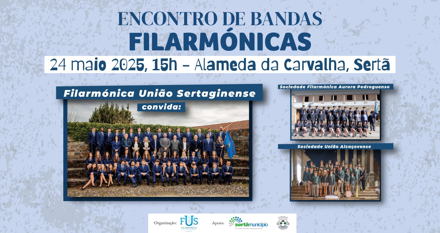 No sábado, dia 24 de maio, a Sertã recebe o Encontro de Bandas Filarmónicas, organizado pela Filarmónica União Sertaginense (FUS). À banda anfitriã junta-se a Sociedade Filarmónica Aurora Pedroguense, de Pedrógão Pequeno, e a Sociedade União Alcaçovense, de Alcáçovas (Viana do Alentejo), juntando “em palco” três instituições centenárias que vivem em prol da música.