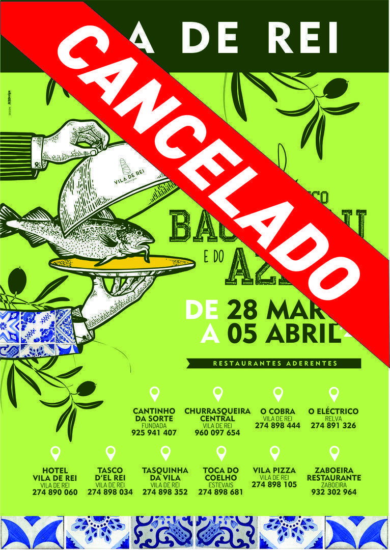 Para além do Festival Gastronómico do Bacalhau e do Azeite, o Município de Vila de Rei anulou igualmente a realização do Festival das Sopas e Petiscos, Sarau Cultural, Férias Desportivas da Páscoa, Concerto de Páscoa, Festival ‘Folclore no Centro’, Os Quintais nas Praças do Pinhal, Concurso de Arte Digital, Concurso de Pintura e Desenho e Ação de Formação ‘Intervenção Snoezelen’.