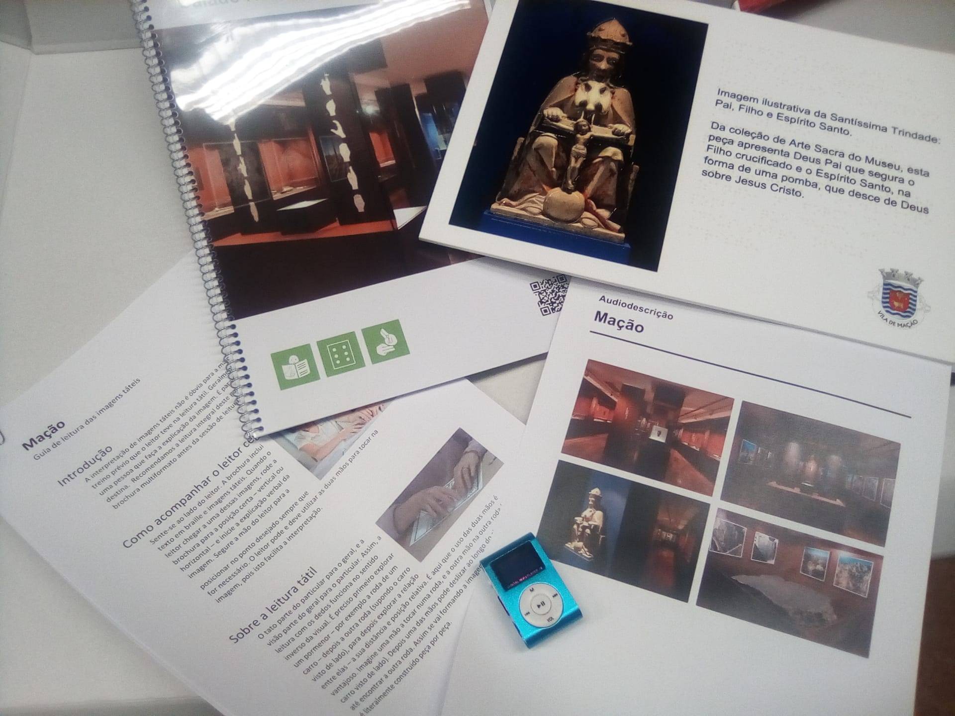 O Kit Multiformato do Município de Mação foi preparado com conteúdos sobre o Museu e é composto por folheto com informação em escrita simples, informação impressa em Braille e imagens em 2D, informação em LGP (Língua Gestual Portuguesa), placa A4 com imagem em 2D1/2 e Braille e gravação de uma audiodescrição (num MP3).