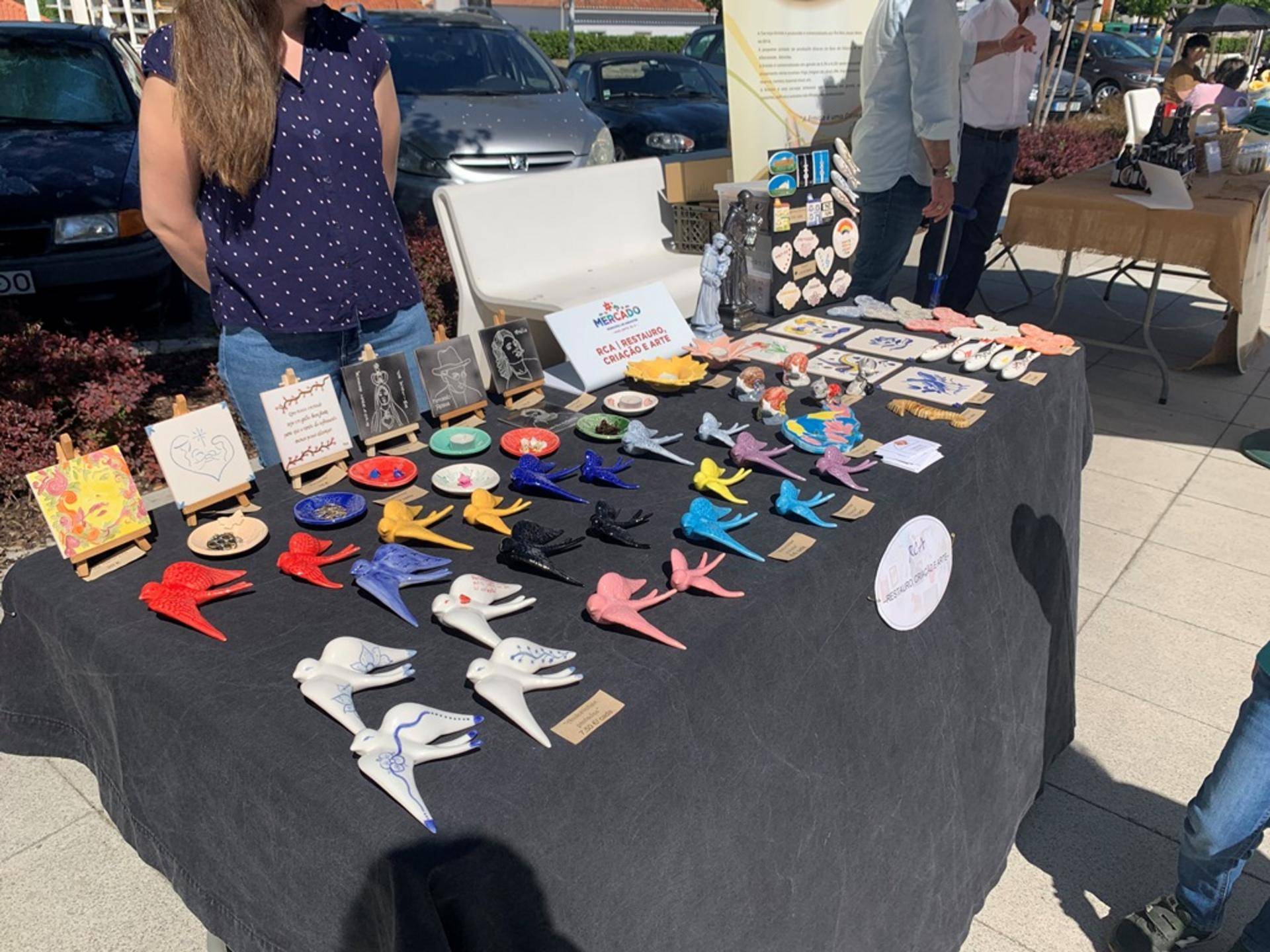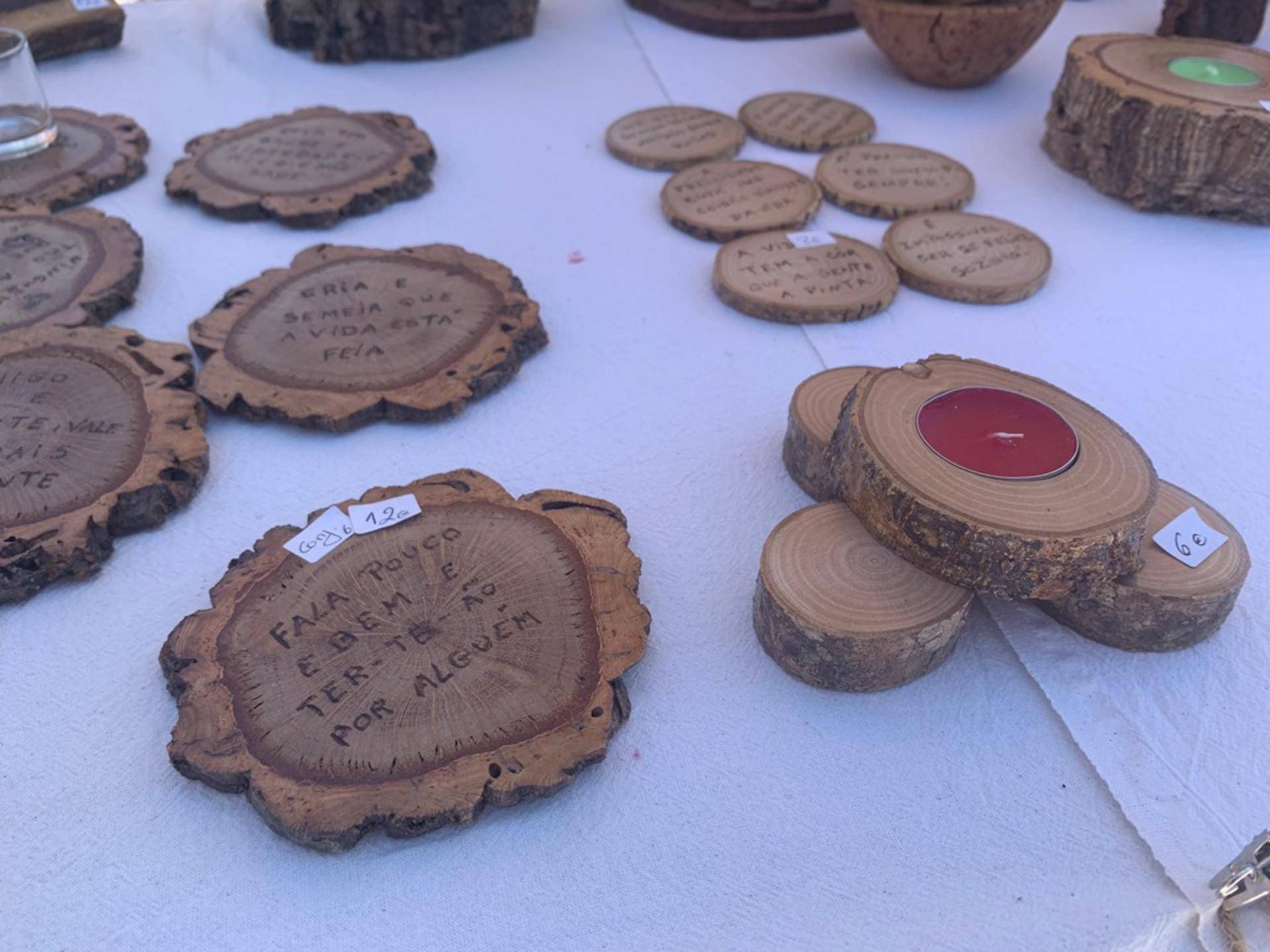 Desde cerâmicas pintadas à mão a cerveja artesanal, são diferentes e únicos os produtos que se podem encontrar nesta feira. Algo em comum entre muitos dos artesãos presentes é que os materiais que usam são reciclados. Aproveitam “pratos partidos”,“restos de tecidos” e até mesmo "restos de troncos" de árvores e cortiças.