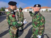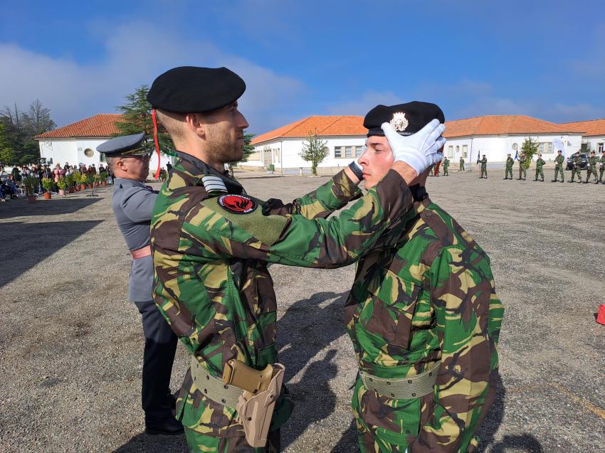A seguir ao Juramento de bandeira foram chamados os três sodados do curso que tiveram melhor classificação em 3 áreas: mérito escolar, Edmilson Sanches (18,44); mérito pessoal Alexande Pedro (16); e desembaraço físico Bernardo Ferreira (14,90). Os formadores dos, agora soldados-recruta colocaram a boina em substituição do quico. A boina, com insígnia à esquerda, surgiu em 1963 com os caçadores especiais, tendo depois sido generalizada pelo exército. É um elemento integrador do cidadão na comunidade militar.
