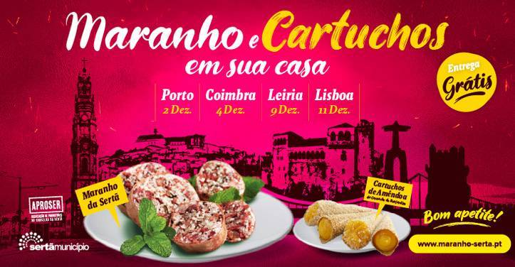 A decorrer até 11 de dezembro, a campanha consiste na realização de entregas de Maranhos da Sertã IG e Cartuchos de Amêndoa de Cernache do Bonjardim nas cidades do Porto (2 de dezembro), Coimbra (4 de dezembro), Leiria (9 de dezembro) e Lisboa (11 de dezembro). As entregas são gratuitas, sendo que os produtos deverão ser encomendados até três dias antes da data definida para entrega. Está estabelecido o máximo de 50 entregas para cada dia/cidade, cuja área de entrega corresponde à área metropolitana, no caso de Porto e Lisboa, e aos concelhos, no caso de Coimbra e Leiria. As encomendas deverão ser efetuadas na plataforma www.maranho-serta.pt e serão enviadas após confirmação de stock e pagamento. Refira-se que a esta iniciativa aderiram os produtores Carnes Simões, Talhos Casel e Pastelaria Império.