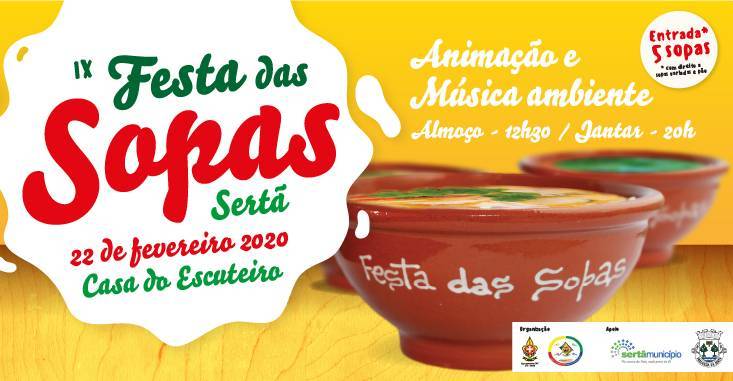 A IX Festa das Sopas, é um evento de cariz solidário que tem como objetivo angariar fundos para o Agrupamento 170 Sertã- CNE e dinamizar a gastronomia sertaginense, promovendo o convívio e confraternização entre a comunidade em geral, familiares, amigos e visitantes. Conta com a parceria de restaurantes, cafés, pizarias, pastelarias, churrasqueiras, empresas, instituições, associações e particulares.