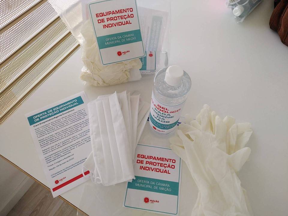 Esta semana, coincidindo com a reabertura de mais espaços comerciais, os serviços da Câmara iniciaram a distribuição de um pacote com o referido equipamento, constituído por gel, luvas e máscaras.