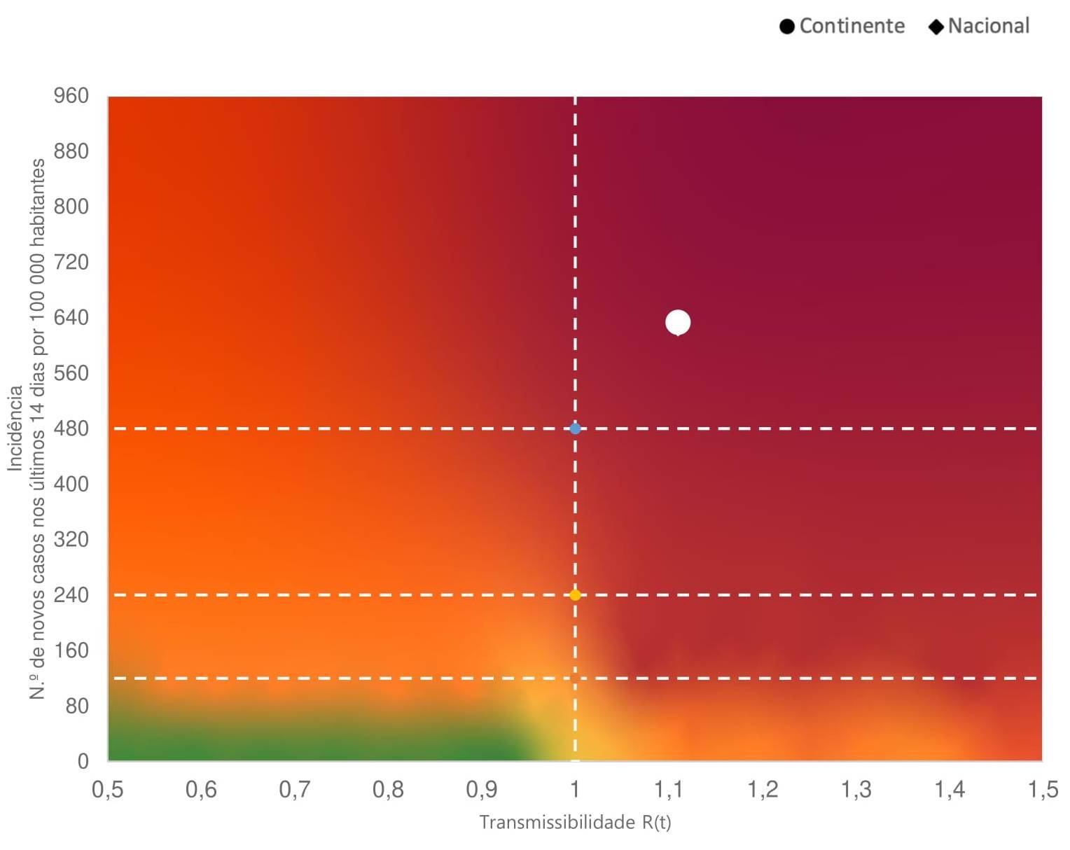 Os dados do Rt e da incidência de novos casos por 100 mil habitantes a 14 dias - indicadores que compõem a matriz de risco de acompanhamento da pandemia - são atualizados pelas autoridades de saúde à segunda-feira, à quarta-feira e à sexta-feira.