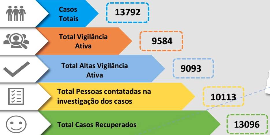 O número de pessoas recuperadas foi atualizado nesta terça-feira. Há mais 259 recuperados, sendo agora 13 096 o total de pessoas que passaram pela infeção e voltaram à sua vida normal. Mantendo-se os óbitos em 379, pelo que o número de casos ativos é nesta terça-feira de 317.