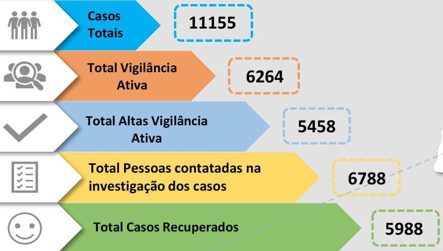 Nas vigilâncias ativas, a autoridade de Saúde Pública já colocou 6 264 pessoas em isolamento por terem tido contactos com infetados, sendo que 5458 tiveram alta da do confinamento.