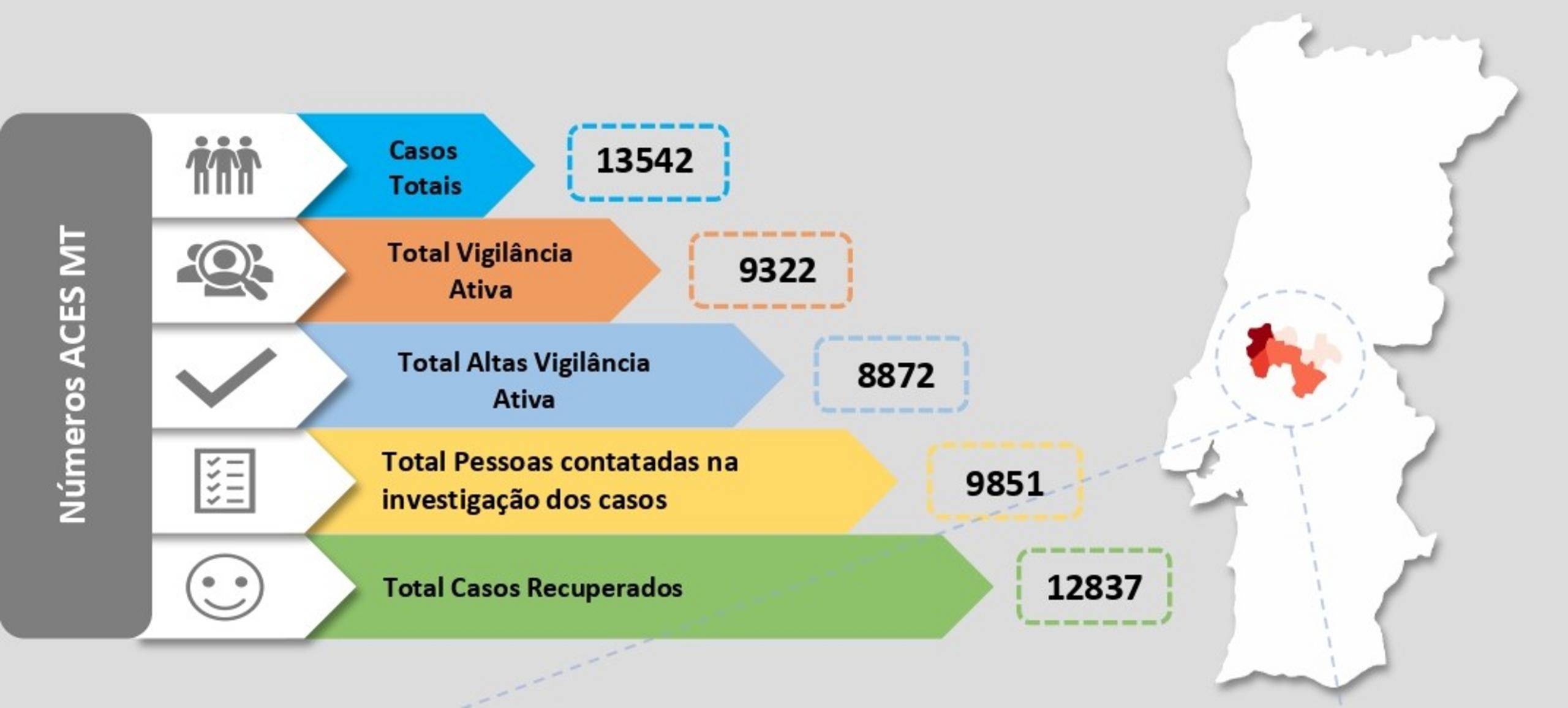 A USPMT indica que estes 326 casos ativos estão localizados em Abrantes (31), Alcanena (21), Constância (30), Entroncamento (31), Ferreira do Zêzere (5), Mação (13), Ourém (90), Sardoal (2), Tomar (57), Torres Novas (33) e Vila Nova da Barquinha (13).
