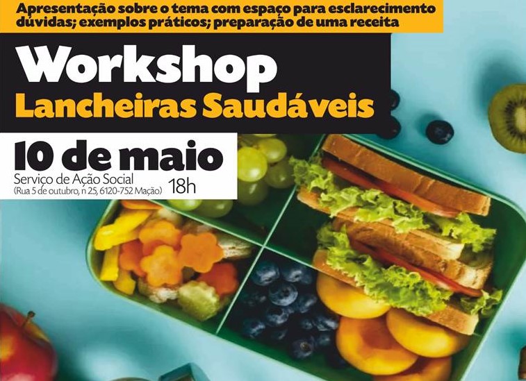 Mação recebe no dia 10 de maio o Workshop Lancheiras Saudáveis. A sessão é dirigida aos pais e encarregados de educação das crianças que frequentam o jardim-de-infância e 1.º ciclo do Agrupamento de Escolas de Mação. Terá lugar no Serviço de Ação Social, às 18h00 de sexta-feira, 10 de maio.