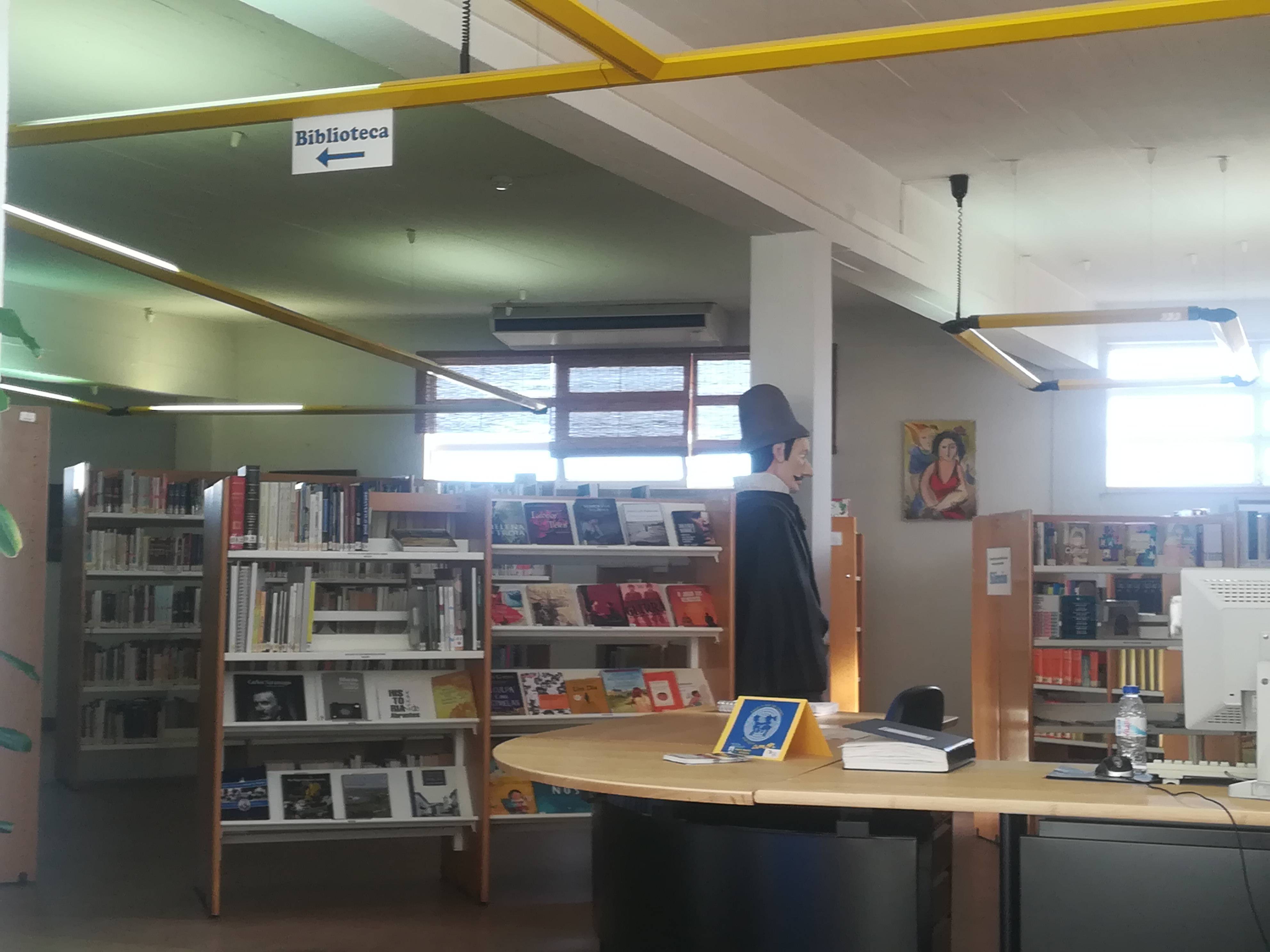 Na hora que indicar, os livros estarão embalados num balcão, no exterior da Biblioteca.