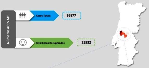 De acordo com os dados do relatório epidemiológico diário da Unidade de Saúde Pública do Médio Tejo (USPMT) a região, composta por 11 concelhos, apresenta um total acumulado de infetados, desde o início da pandemia, de 36.877 pessoas que contraíram a infeção provocada pelo coronavírus.
