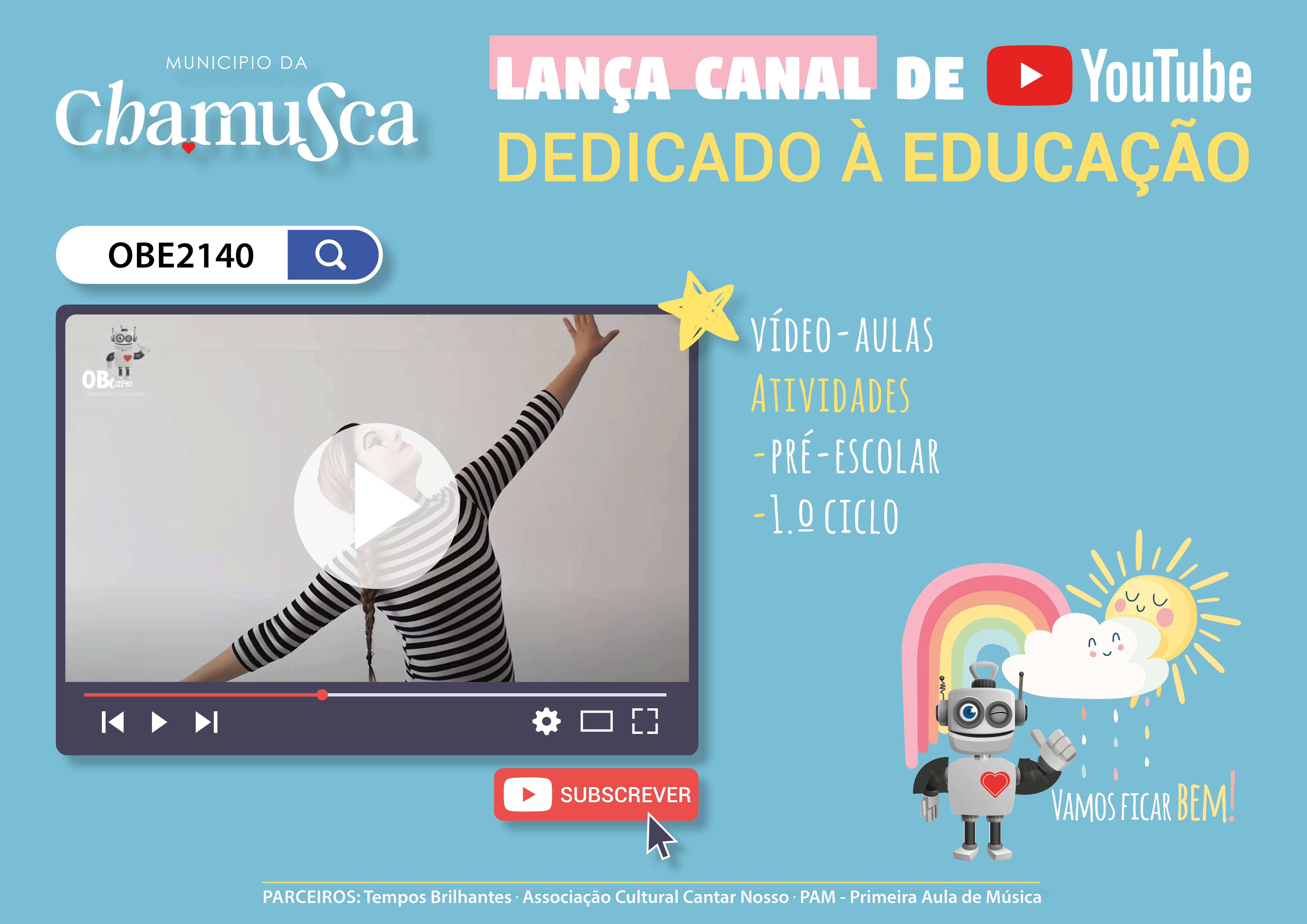 Para aceder ao canal basta fazer pesquisa no Youtube ou google por OBE2140 ou entrar no website da educação do Município da Chamusca .