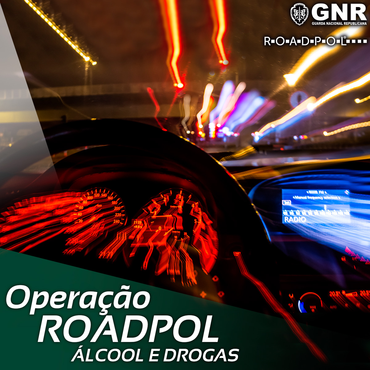 A Guarda Nacional Republicana (GNR), entre os dias 5 e 11 de dezembro, no âmbito do planeamento anual efetuado pela RoadPol, irá realizar uma operação de fiscalização intensiva da condução sob efeito do álcool e substâncias psicotrópicas, com o objetivo de promover comportamentos mais seguros por parte dos condutores e diminuir a sinistralidade rodoviária grave, em todo o território nacional continental.