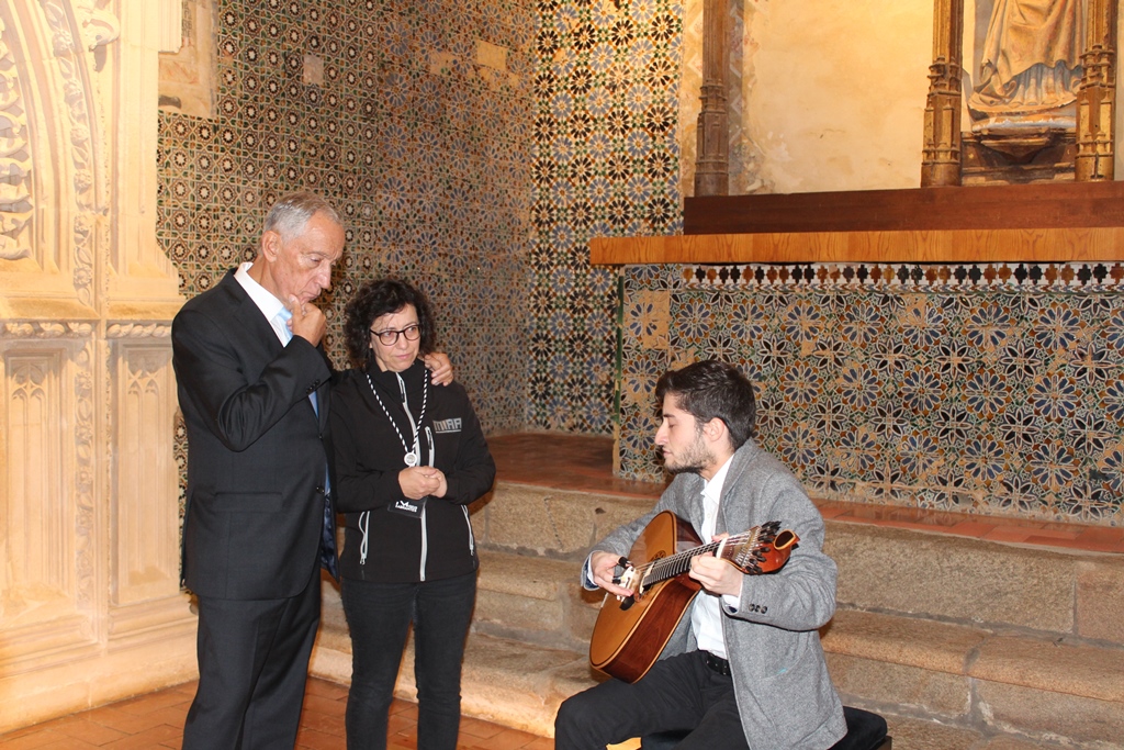 Ouviu as explicações de Filomena Gaspar, arqueóloga do Município, que fez a introdução a Abrantes, ao castelo, à fortaleza e a alegadas inspirações para um monumento com uma arquitetura diferente dos outros, da mesma época. Entre as explicações históricas, Presidente e Arqueóloga foram trocando impressões sobre factos da história de Portugal, e de Abrantes. E ficou a saber-se que há indícios, não visíveis, da passagem dos Cavaleiros Templários por Abrantes. E das influências que os muito viajados, à época, Almeida trouxeram para Abrantes.