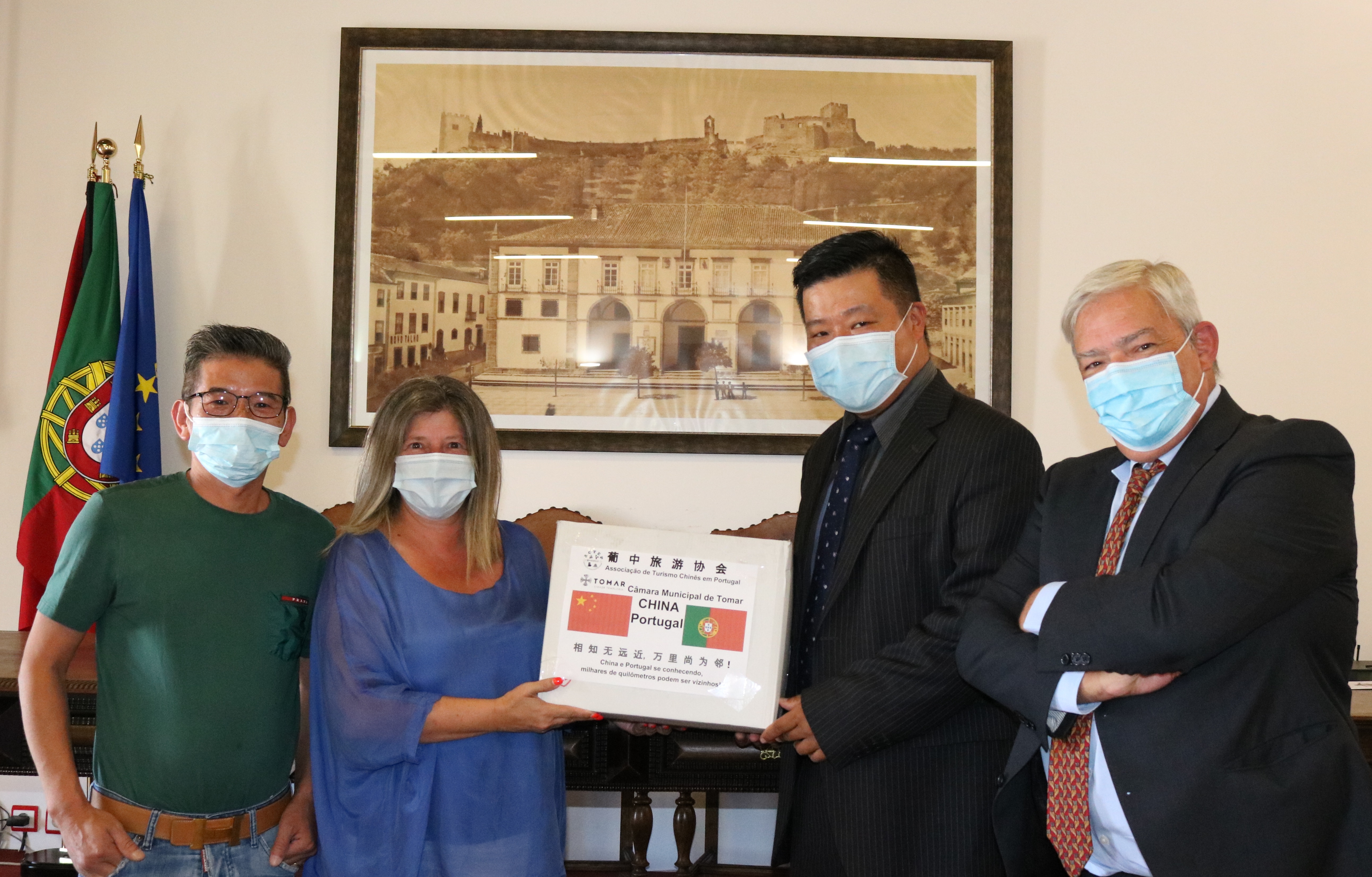 O presidente da ACTEP, Yong Liang, deslocou-se na quinta-feira, 13 de agosto, aos Paços do Concelho em Tomar entregar 160 equipamentos de protecção individual contra o Covid-19 à autarquia nabantina, a serem distribuídos por instituições do concelho.