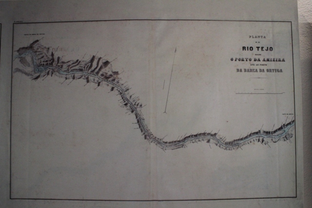 Logo à entrada, para além da receção, temos dois mapas do rio Tejo, antigos, com o “desenho” do rio. Um que mostra o traçado entre a Barca da Amieira e Barca da Ortiga. E um segundo com o trajeto entre a barca da Ortiga e Abrantes. E ao lado uma presença da pré-história, como disse Luiz Oosterbeek, responsável pelo Museu de Mação e pelo Núcleo Museológico de Ortiga, que é o início comum de uma comunidade.