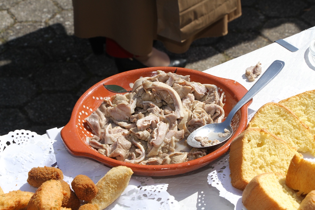 As portas da Junta de Freguesia abriram-se para começar a receber os convidados. Como vêm de todo o país, há sempre umas horas para os receber com uma mesa farta, ou não fosse uma confraria gastronómica. E mesmo para o pequeno-almoço, bucho, tripas e enchidos não podiam faltar ao arranque do evento.