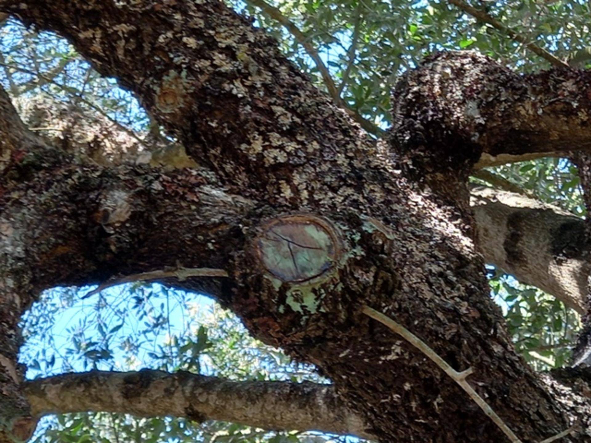 Ao que explicou com a aplicação desta “massa” a árvore não perde tanta seiva como aconteceria se a “ferida sarasse” de forma normal. E é visível que este ato já tinha sido feito noutra altura, há uns anos. Consegue perceber-se que houve cortes “pintados” com uma “tinta” esverdeada.