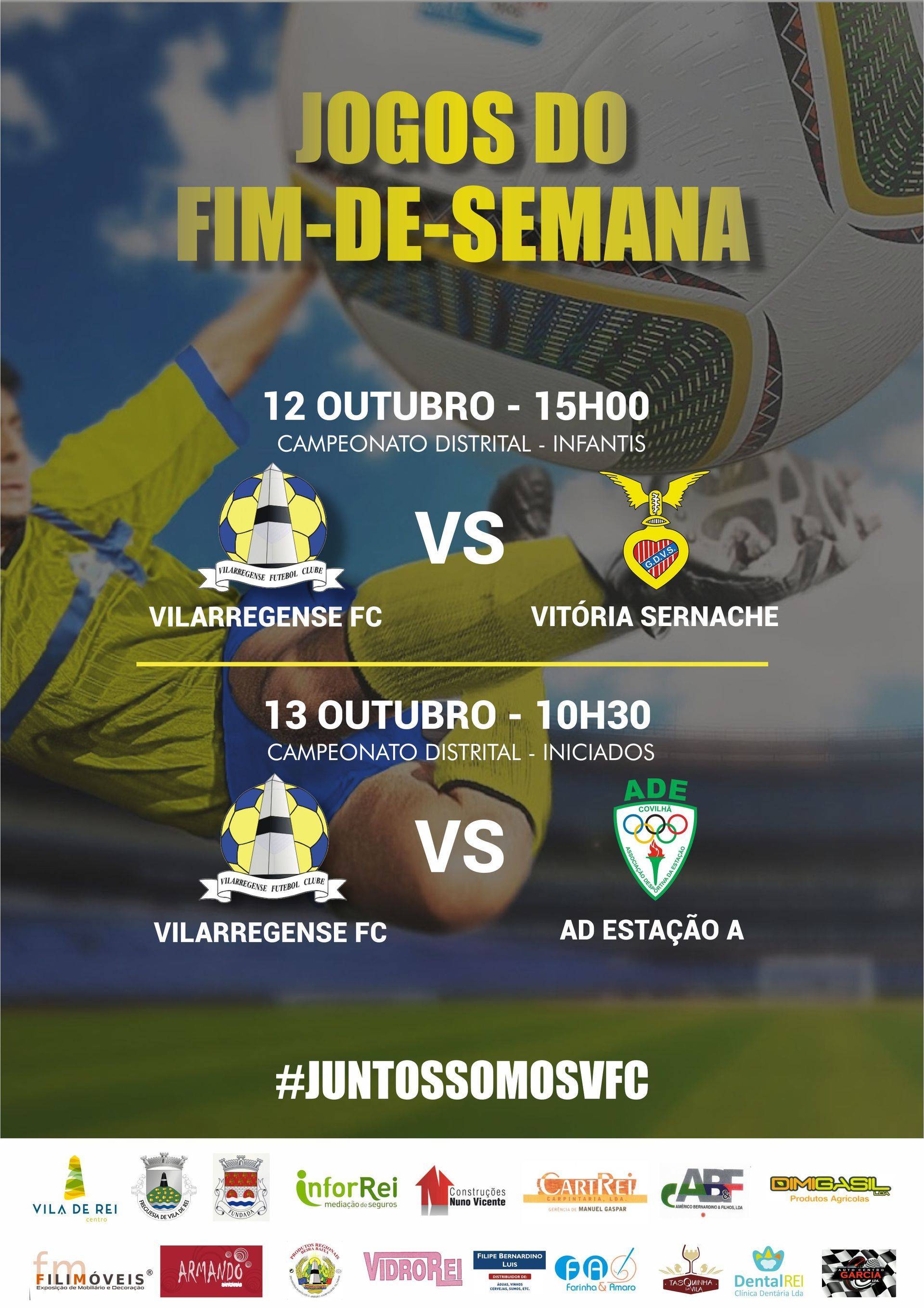 Informa o Município de Vila de Rei que no dia 12 de outubro, sábado, entra em campo a equipa de Infantis, num jogo a realizar pelas 15h00, no Campo Municipal de Vila de Rei, frente à formação do GD Vitória de Sernache.