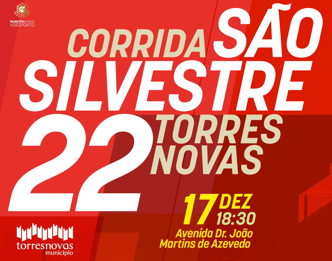 A Corrida de S. Silvestre de Torres Novas, a prova jovem, e a Caminhada de São Silvestre 2022, promovidas pelo Município de Torres Novas, estão marcadas para dia 17 de dezembro, sábado, com partida na Avenida Dr. João Martins de Azevedo.