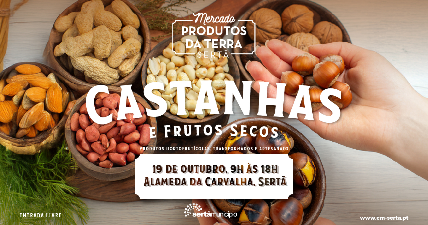 Com a chegada da nova estação, o mercado “Produtos da Terra” dedica a sua próxima edição às Castanhas e Frutos Secos, que acontece este domingo, 19 de outubro, das 9 às 18 horas, na Alameda da Carvalha, na Sertã.