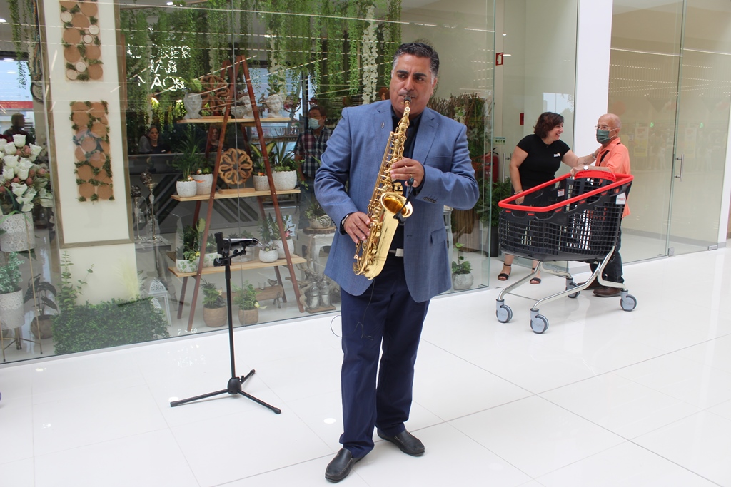 Entre a foto de família de todos os colaboradores e a preparação do espaço para receber os clientes não havia um minuto de paragem. O bolo, não de aniversário, mas de abertura da loja, estava pronto a ser servido. A animação, com os “mosqueteiros” da Meganimação estava a postos, assim como o músico que a cantar ou a tocar saxofone iria animar todo o dia um deste novo espaço.