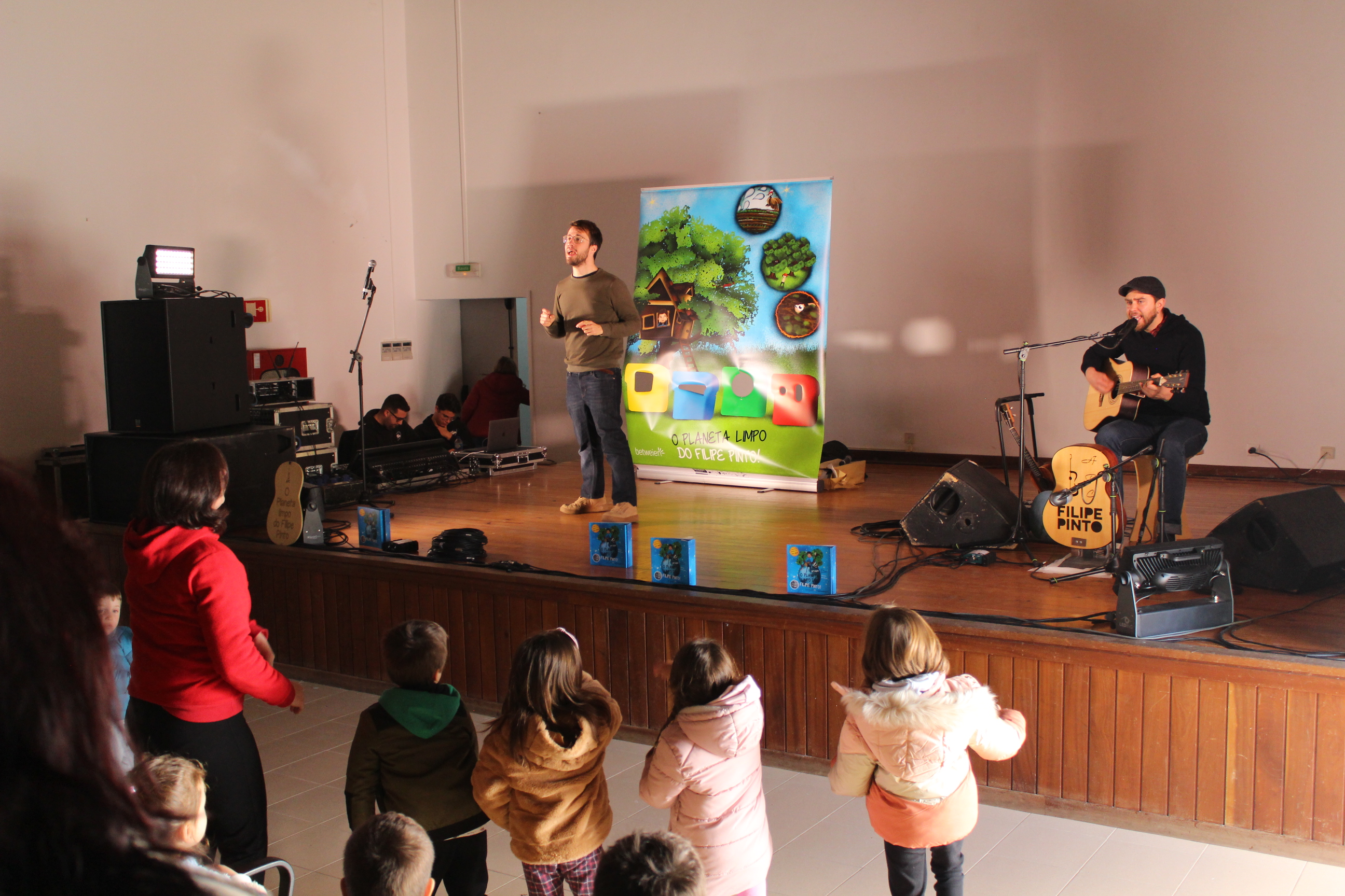 O cantor e artista Filipe Pinto esteve, na manhã desta sexta-feira, 24 de fevereiro, no Auditório Municipal de Vila de Rei onde apresentou o seu projeto ‘O Planeta Limpo do Filipe Pinto’ às crianças do Jardim-de-Infância do Centro Escolar e do 1º Ciclo do Agrupamento de Escolas de Vila de Rei.