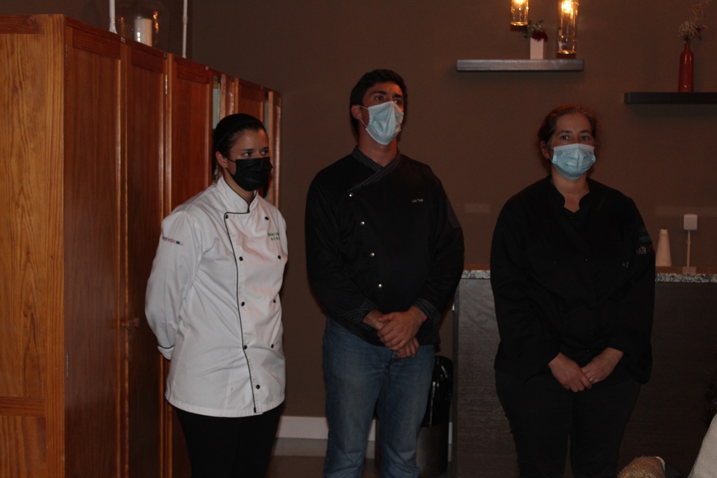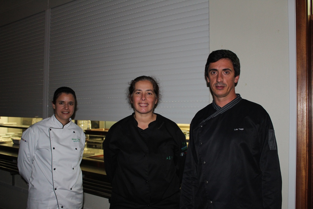 Bárbara Vieira, Luís Tiago e Raquel Rosa são os três chef’s de cozinha que orientam os alunos. São eles que diariamente trabalham a teoria e os ensinamentos. Seguramente que depois de muitas experiências ao longo de dias, depois de escolhido o menu, esta sexta-feira deverá ter sido de uma azáfama e das grandes.