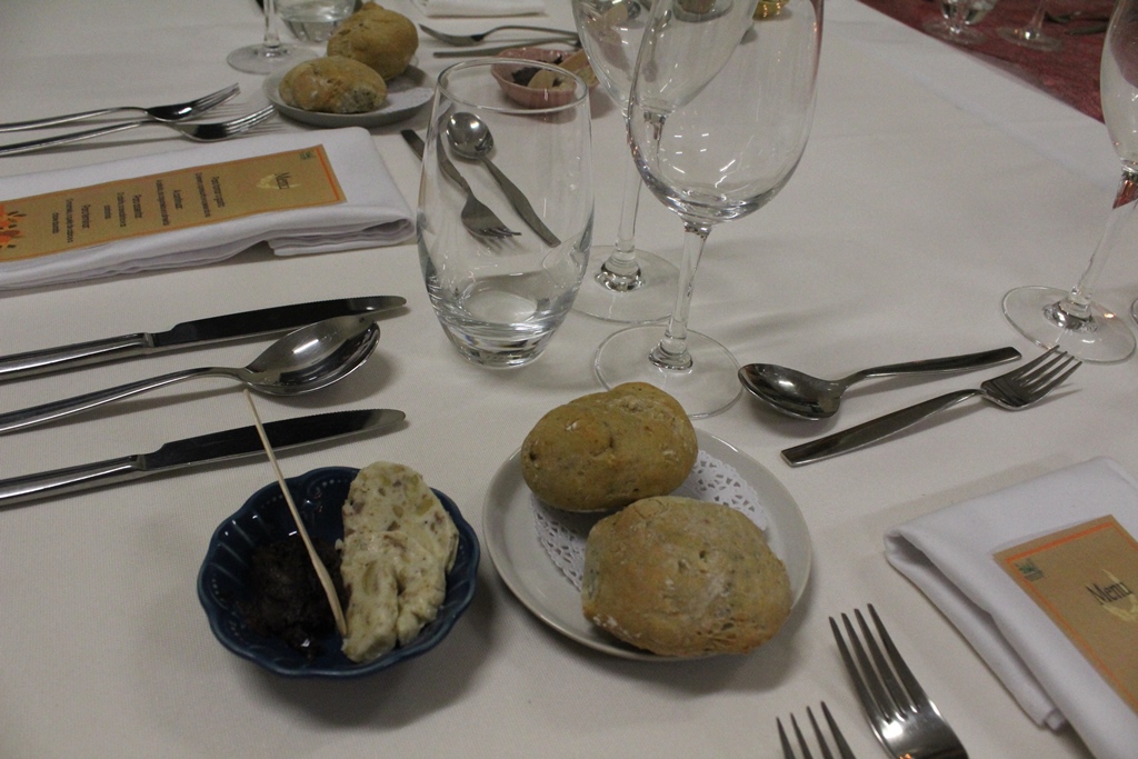 Vamos então ouvir o que foi o menu, que começou com um pão de azeitonas e manteiga caseira.