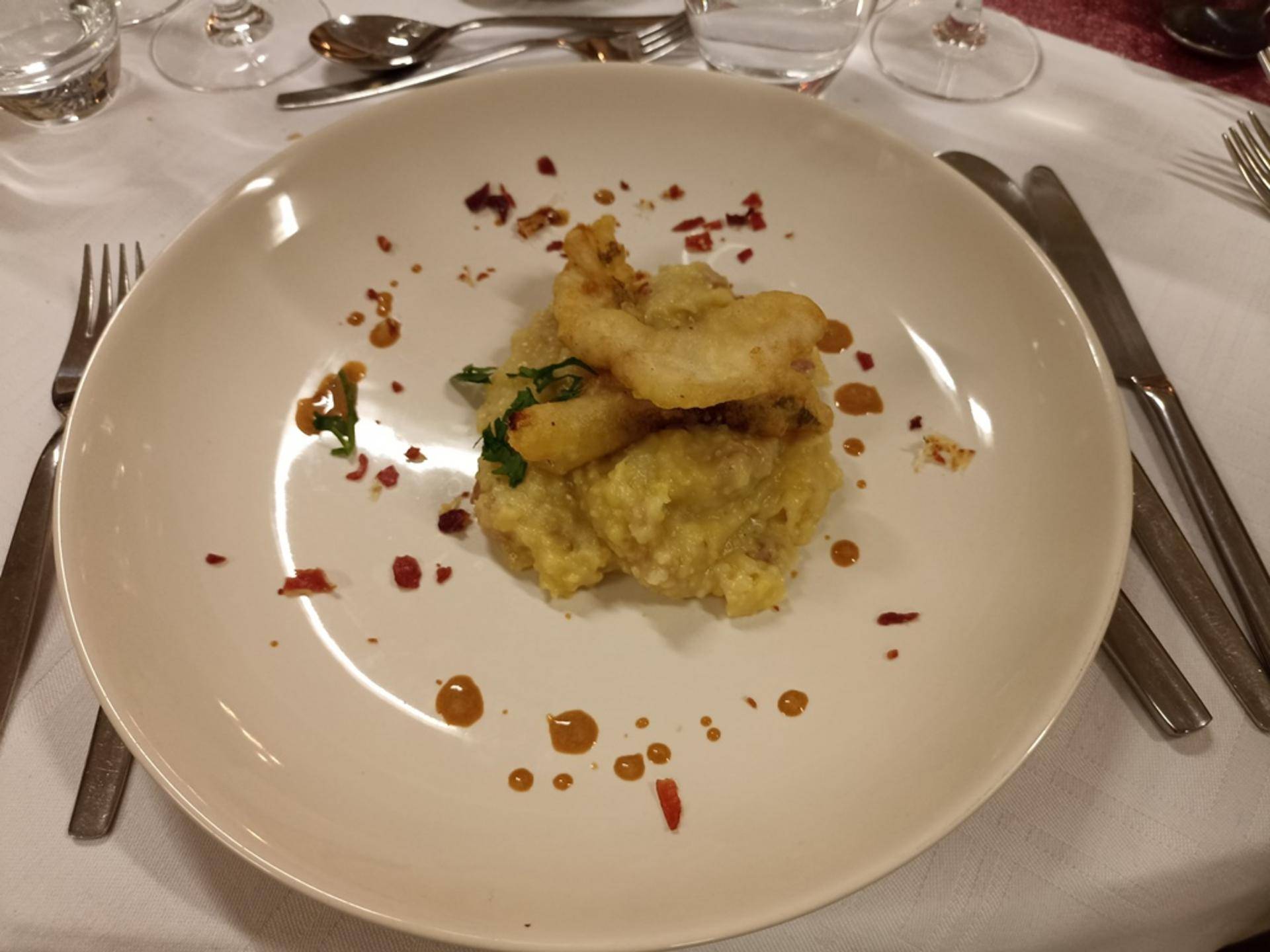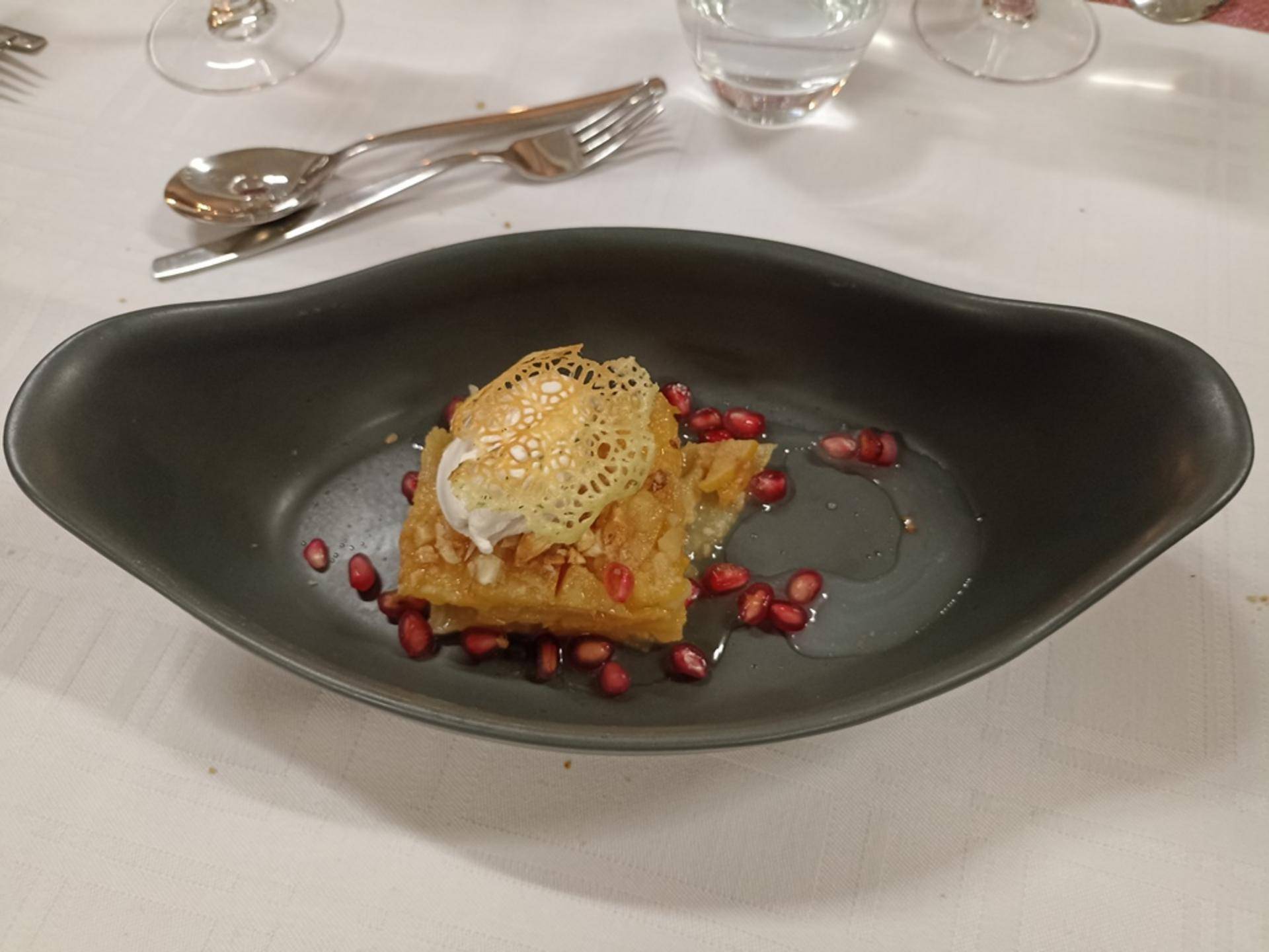 Depois porque fazer um serviço com uma reinterpretação dos pratos, dos acompanhamentos e do empratamento com requinte acrescentará mais nervosismo. Mesmo assim as mãos não podem tremer na preparação da degustação. É que se for caso disso, pode haver o pormenor, quase milimétrico, de colocar um qualquer elemento decorativo no prato com recurso a uma pinça ou pode ter de se pintalgar o prato com um qualquer molho, como se pode verificar no prato de entrada.