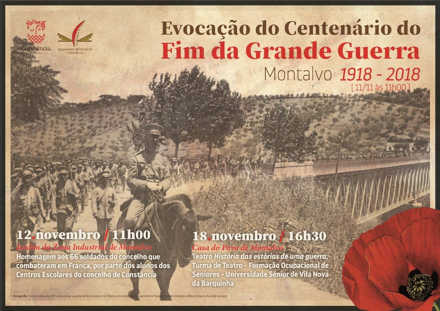 Na próxima segunda-feira, 12 de novembro, pelas 11 horas, no Jardim da Zona Industrial de Montalvo, o Município de Constância vai dinamizar um evento evocativo dos 100 anos do final da Grande Guerra, precisamente na freguesia que acolheu a preparação das tropas portuguesas que partiram para a Flandres.