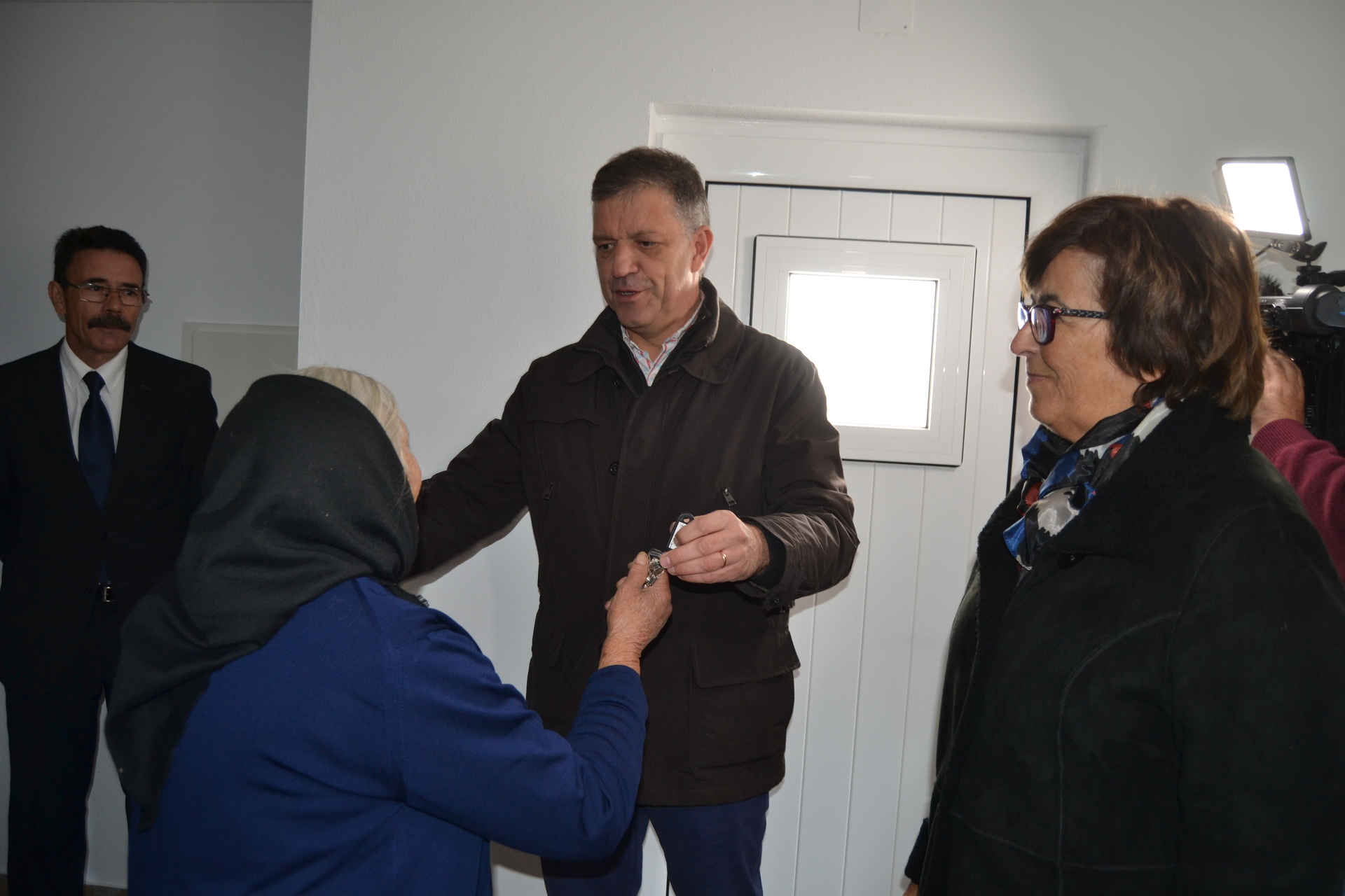A primeira casa entregue foi a de Delfim Jacinto seguindo-se a de Maria de Jesus Marques que, simbolicamente, se fez acompanhar do lenço que usava no dia do incêndio, queimado, pois até o cabelo já estava a arder. Maria de Jesus queimou-se e perdeu a casa. Tem vivido na casa de um filho, ontem recebeu a sua casa de volta. É uma outra casa, sim, mas voltou a ter uma casa a que chama sua. Tratadas as feridas do incêndios, faltava sarar esta.