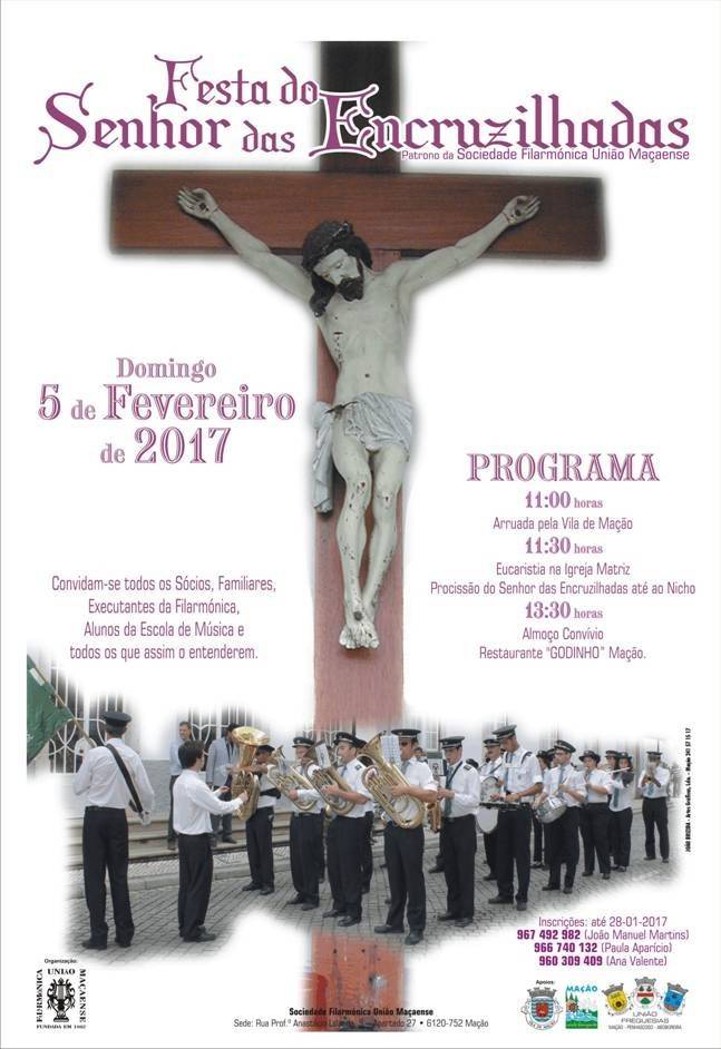 A Sociedade Filarmónica União Maçaense realiza este domingo, dia 5 de fevereiro, a tradicional Festa do Senhor das Encruzilhadas, Patrono da Filarmónica.