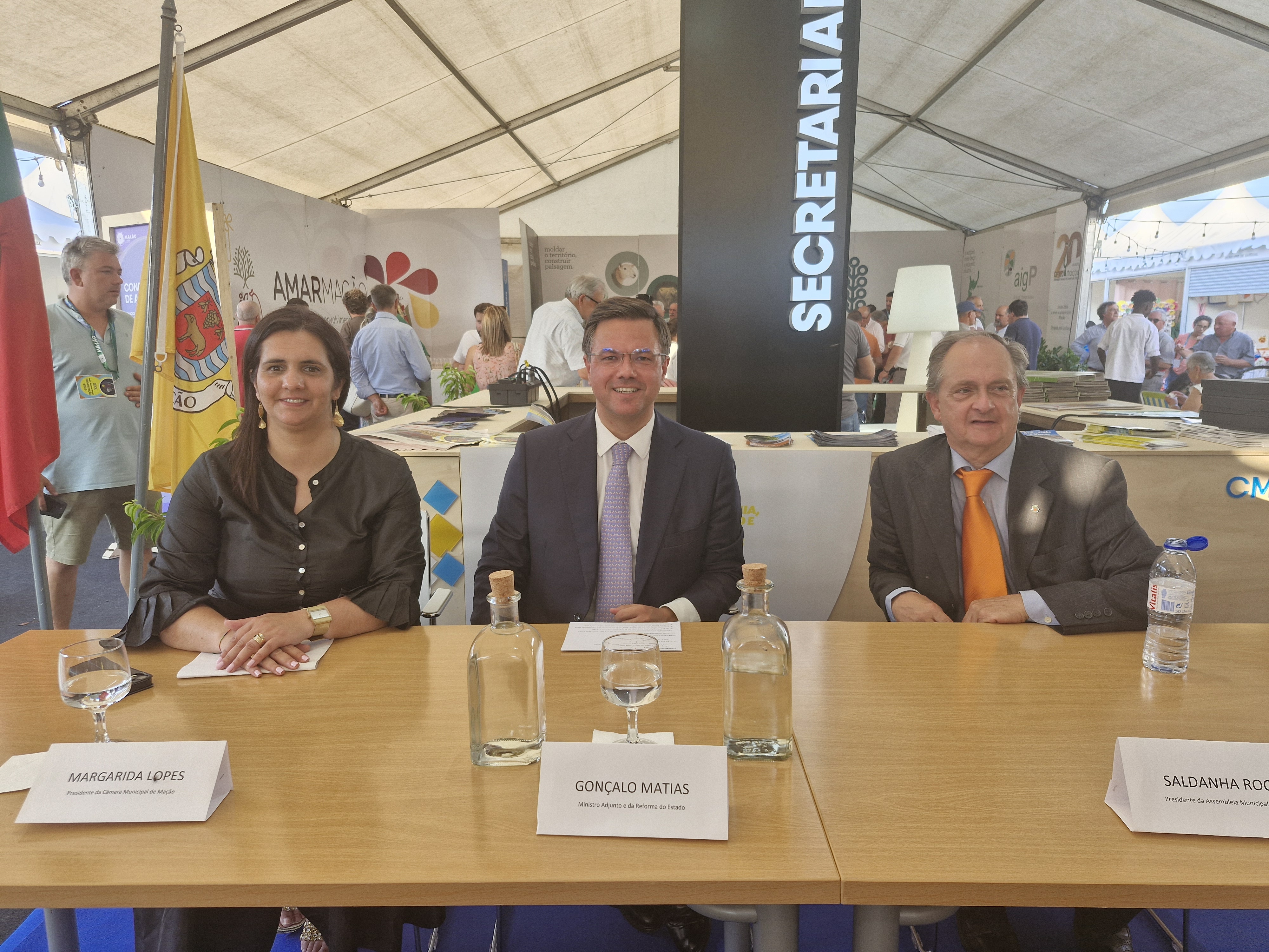 Da volta que deu pelos expositores da Feira Mostra, disse ter gostado “imenso” e que “levo, e já levava aqui de Mação, boas lições e bons exemplos”. E deu conta de que “eu lembro-me sempre de ver o presidente Vasco Estrela a receber as pessoas que aqui vinham. A receber as pessoas que vinham aqui para investir, que vinham aqui para dar emprego... e essa atenção ao detalhe, essa atenção a quem quer vir viver para aqui, a quem vive cá, a quem quer mudar-se para cá, a quem quer cá vir passar o fim de semana, mas também é alguém que merece atenção e precisa certamente de construir a sua casa ou de recuperar uma obra, ou de alguém que vem para aqui investir, criar uma empresa, criar empregos, tudo isso são exemplos da reforma do Estado”.