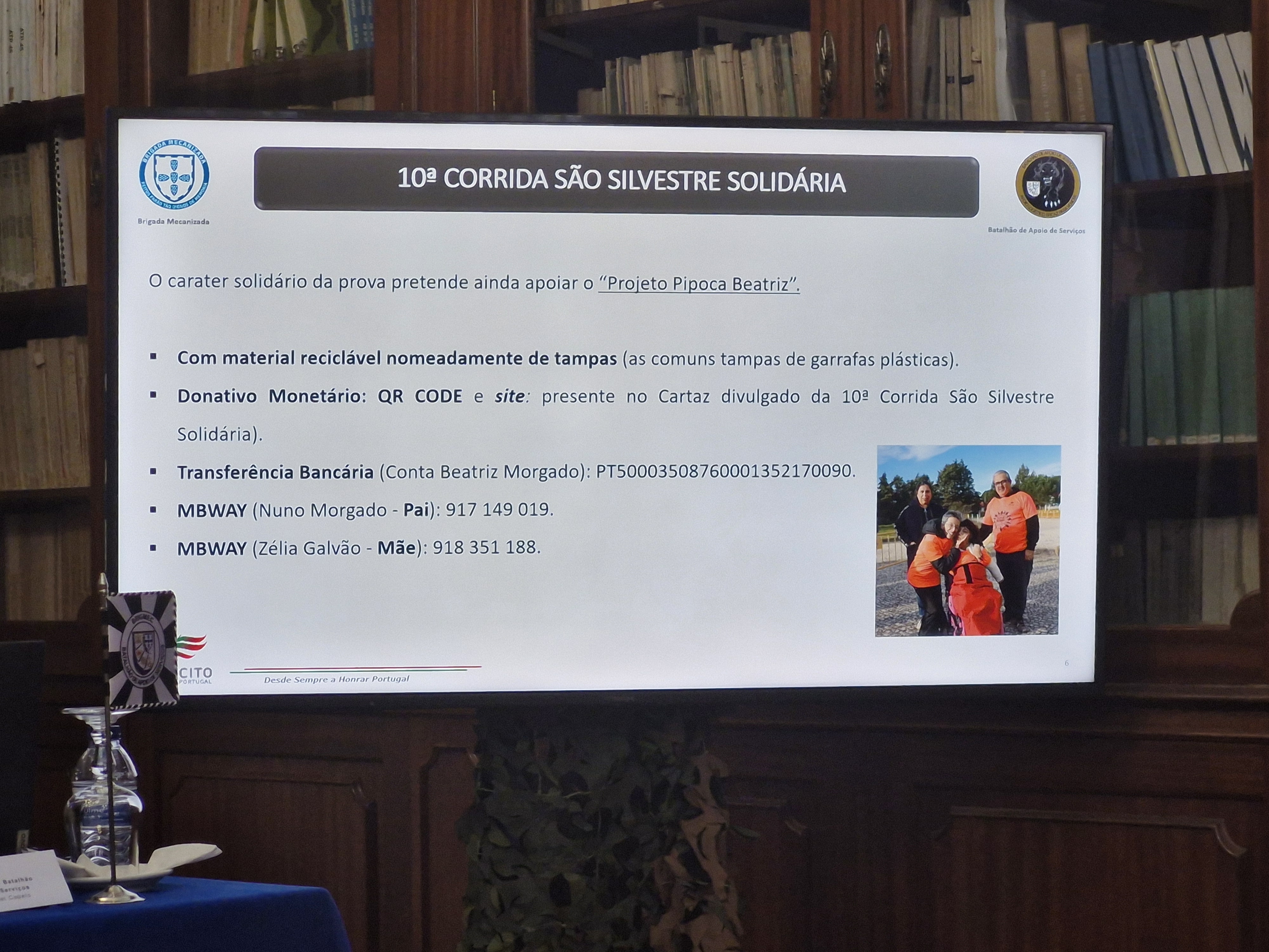 Foi o comandante da Brigada Mecanizada, o brigadeiro-general António Fernandes Oliveira, que encerrou a apresentação da S. Silvestre Solidária. A primeira palavra foi “para dizer que ao fim de 10 anos, esta é a décima edição, significa que a iniciativa tem pernas para andar”. Já deu para perceber que “a iniciativa é sólida, é coerente, tem pernas para andar e penso que estamos nessa fase já de grande maturação. Naturalmente, é uma iniciativa para continuar”, garantiu.