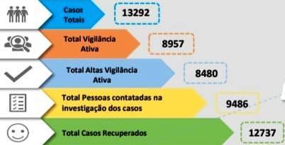 O número de pessoas recuperadas é de agora de 12 737, mantendo-se os óbitos em 379, pelo que o número de casos ativos é neste sábado de 176.