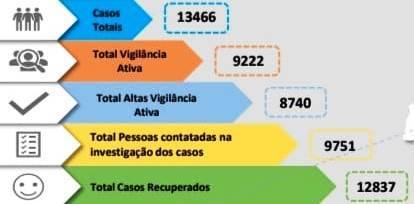 O número de pessoas recuperadas é de 12 737, mantendo-se os óbitos em 379, pelo que o número de casos ativos é nesta terça-feira de 250.